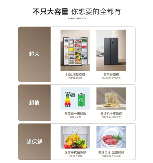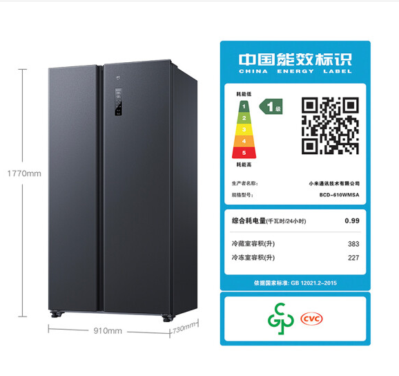 米家小米610L对开门大容量家用冰箱双开门 一级能效风冷无霜超薄嵌入银离子除菌 BCD-610WMSA