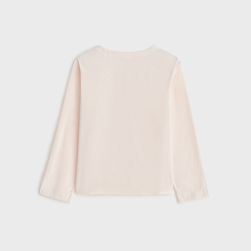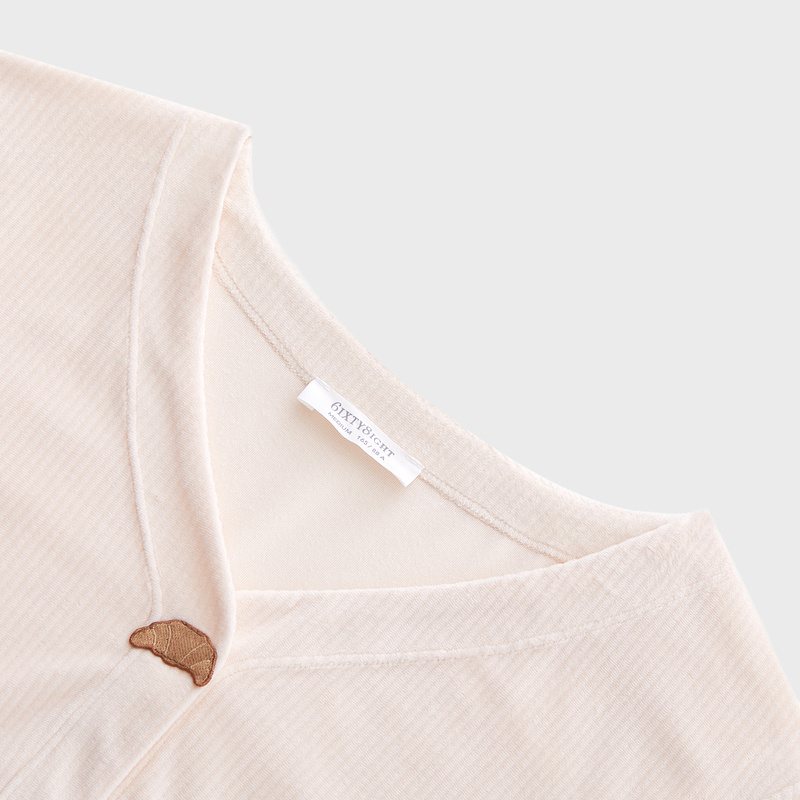 Crafted from light and super soft fleece ribbed fabric to enhance its' skin-like feel and make you feel comfortable all-day. Featuring adorable food motif embroidery on buttons to add a playful touch to the lounge look.