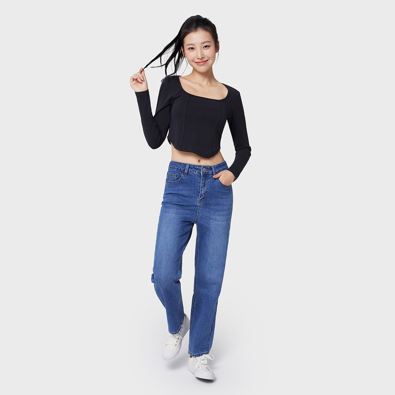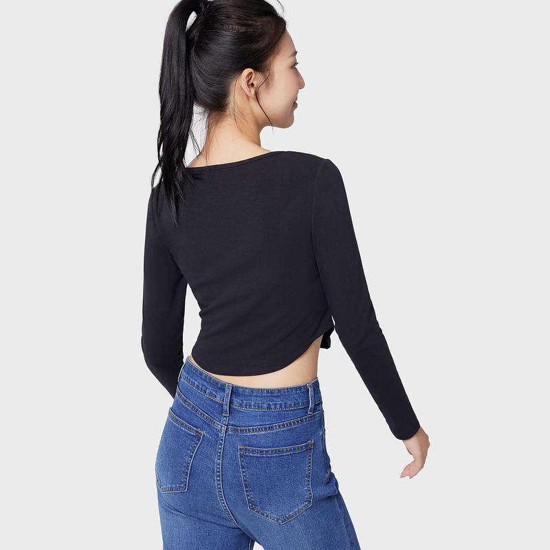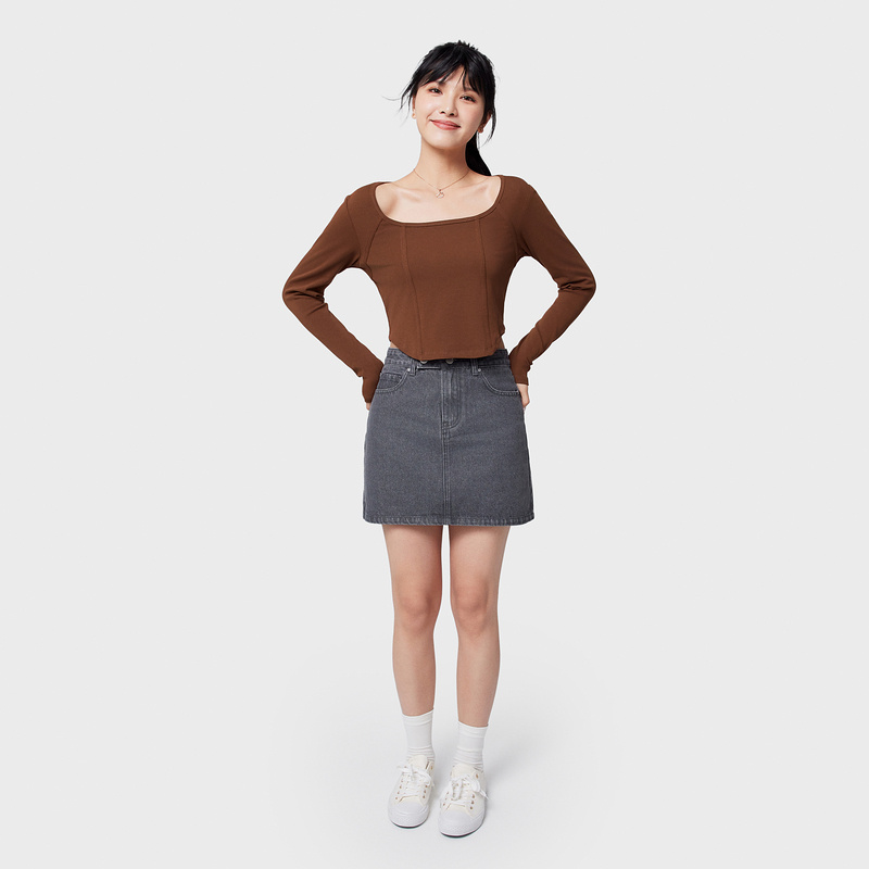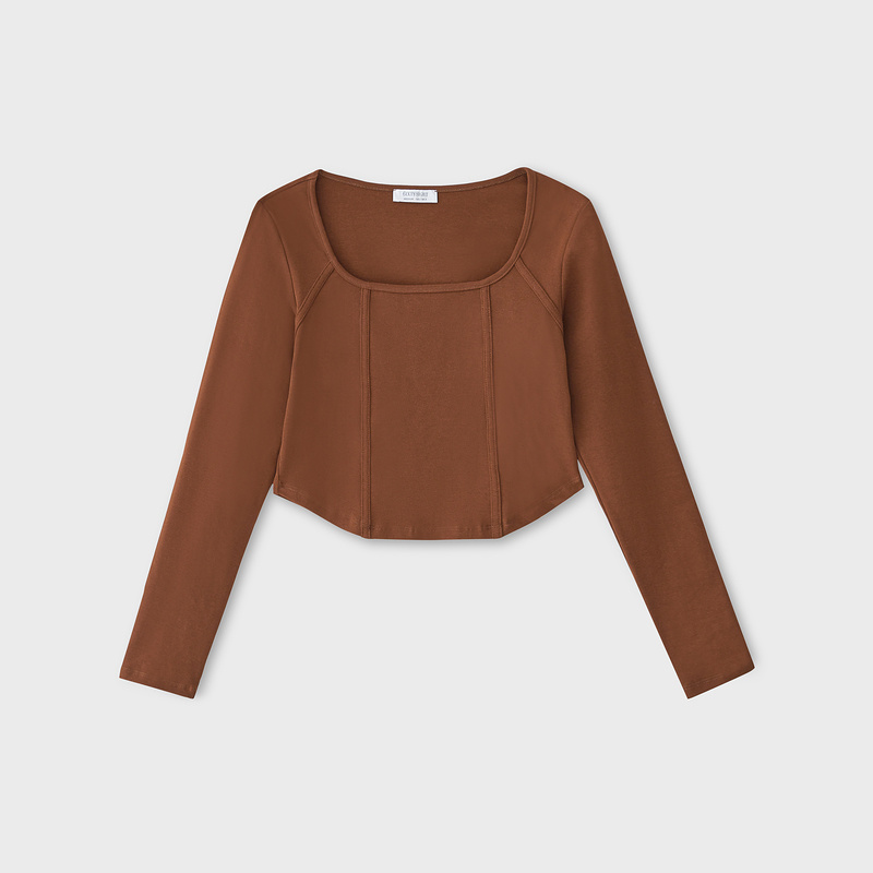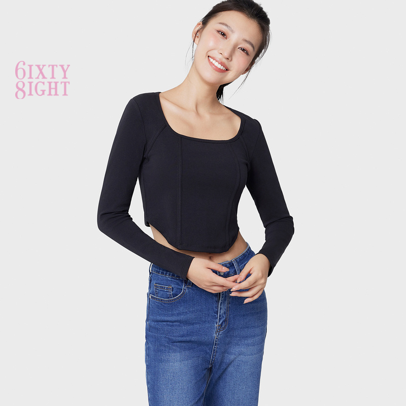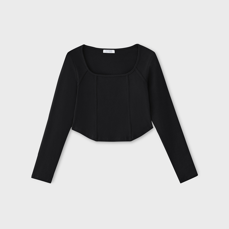 "Capture the Y2K aesthetics with this corset style cropped top. Finished with curved hem and square neckline details, perfect for flatter your body shape.