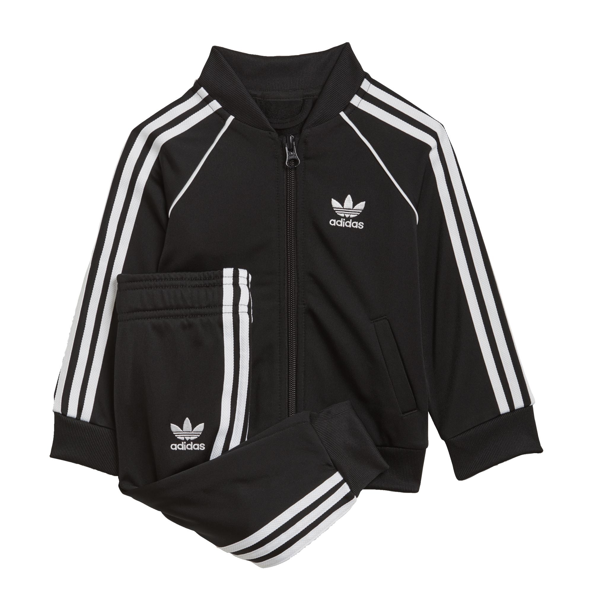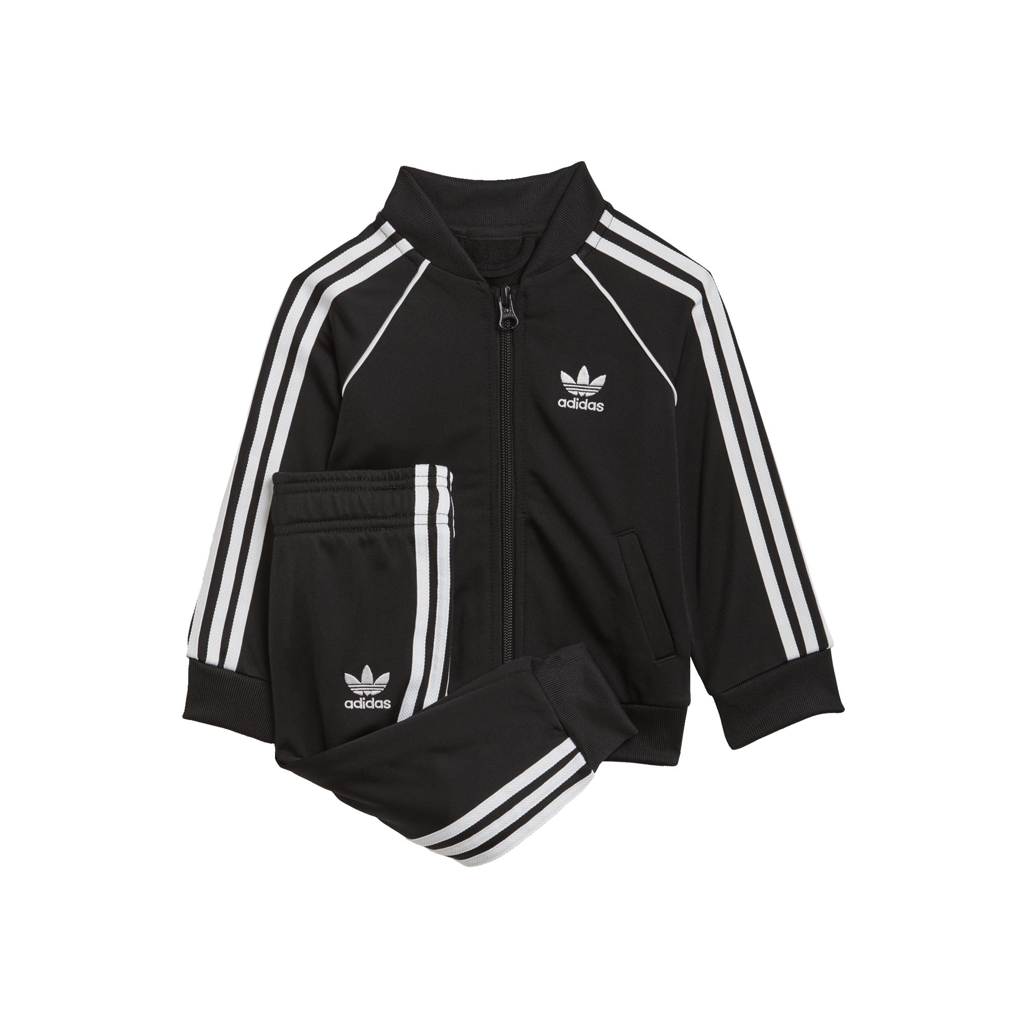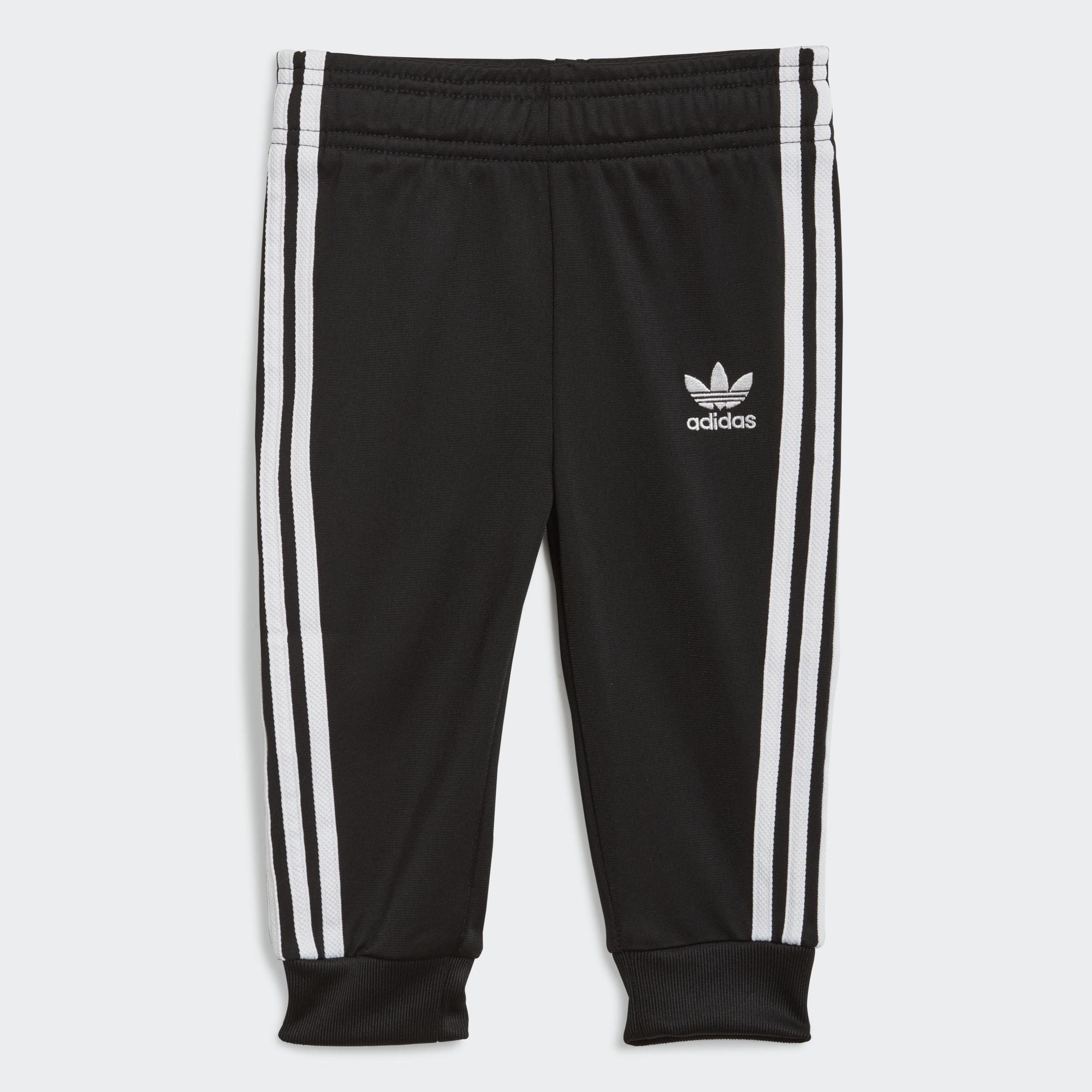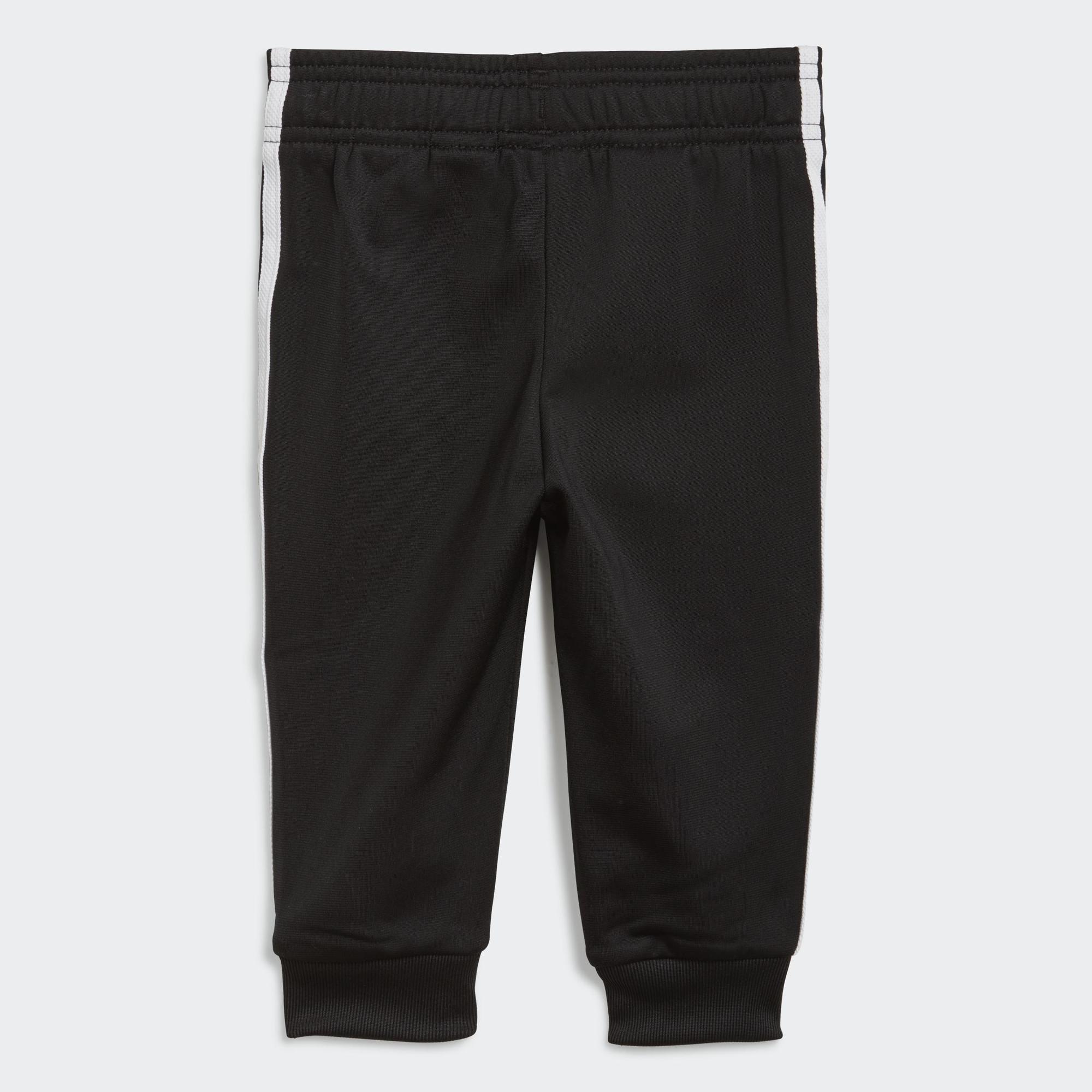 Calling all future MVPs. Your star will win at sporty style in this infants' track suit. Level up their adidas game with iconic 3-Stripes and a hit of piping. That OG sheen of tricot adds the finishing touch. This track suit is made with Primeblue, a high-performance recycled material made in part with Parley Ocean Plastic.