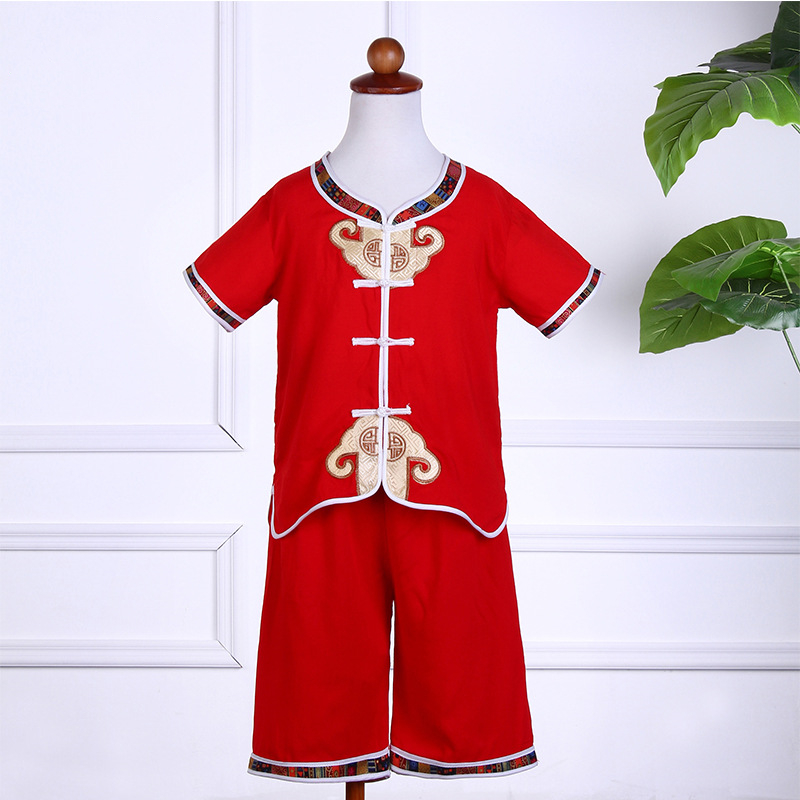 【baixilife】Children's Traditional Costume Tang Style Boy Suit Chinese Style Baby's Short Sleeve Children's Suit|,|