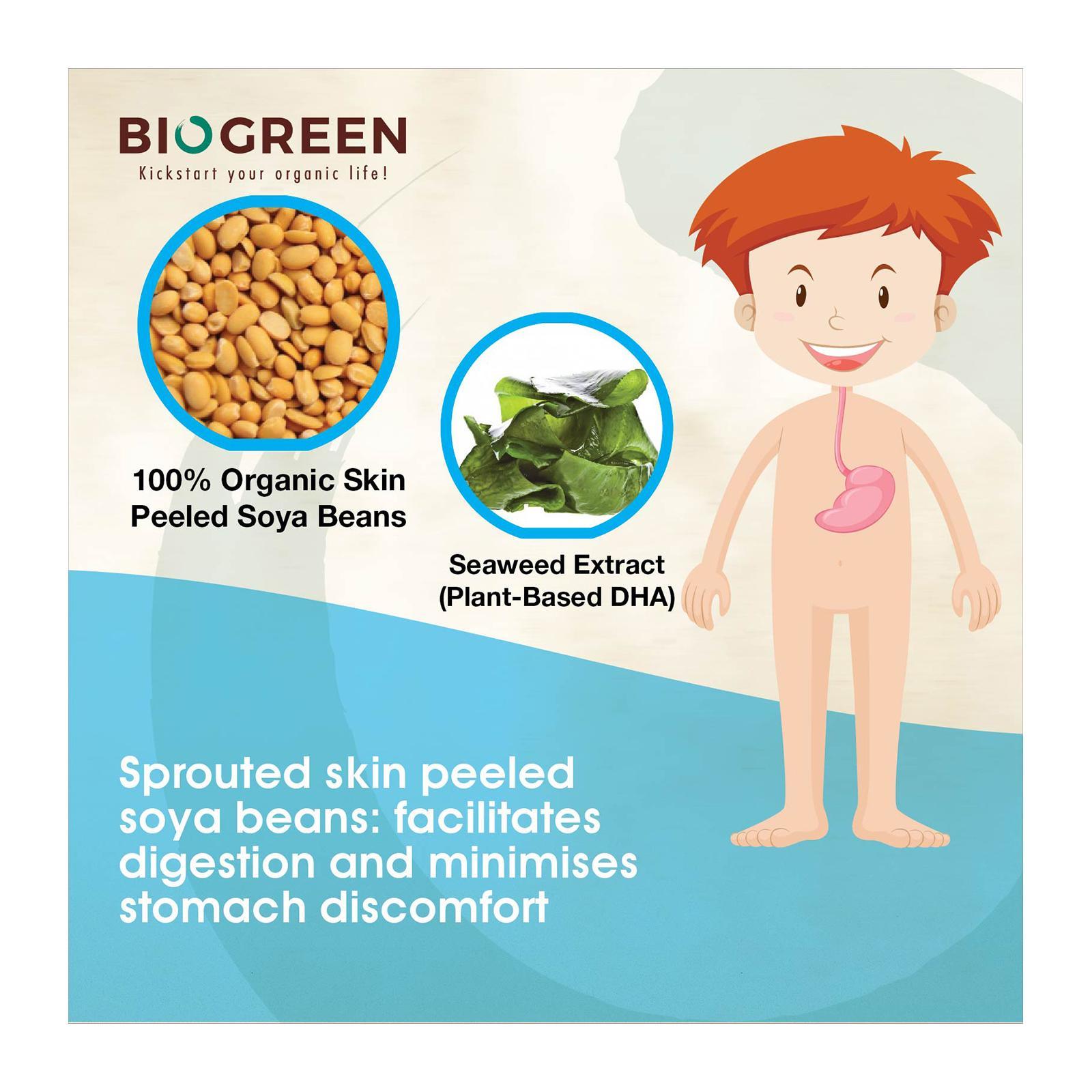100-percent Organic Skin Peeled Soya Bean, Seaweed Extract (Plant-Based DHA), Oligosaccharide, Cane Sugar.
