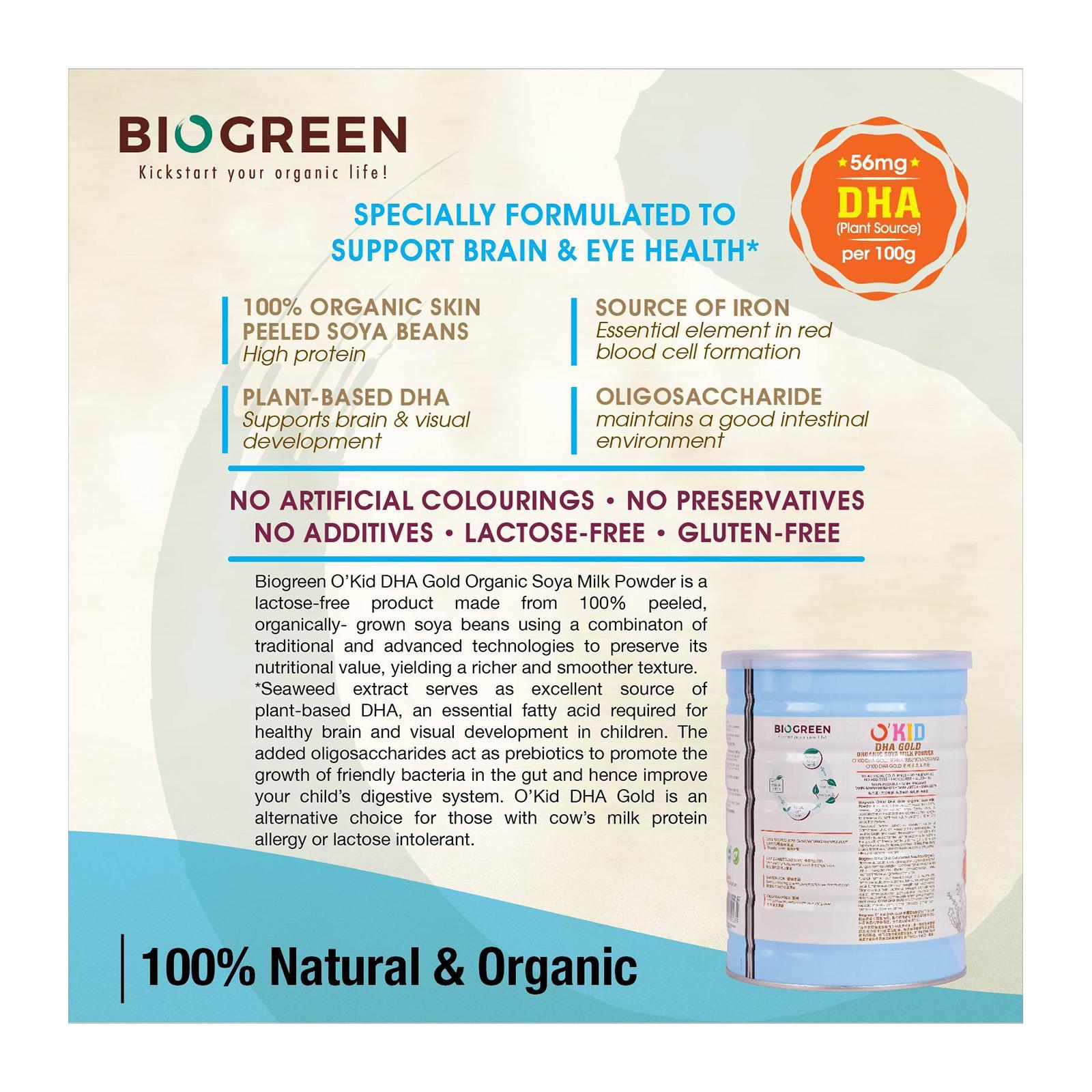 O'Kid DHA Gold is made up of 100-percent organic skin peeled soya bean, manufactured by combining traditional method with modern technology, taste richer and smoother. Added with plant source DHA, an important element for brain and eyes development, it's a good choice for kids. O'Kid DHA Gold is added with prebiotic and contains no dairy ingredients, making it easy to digest and is recommended for those with cow milk energy.