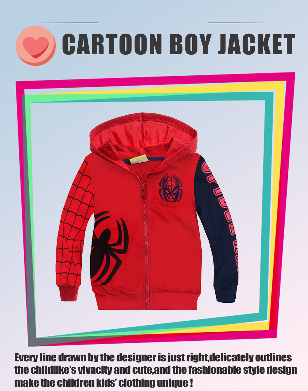 Boy Hoodies Coat Jacket for Kid Cartoon Spider-mans Printed Long Sleeved Thin Hooded Coats Jackets 1 to 10 Years