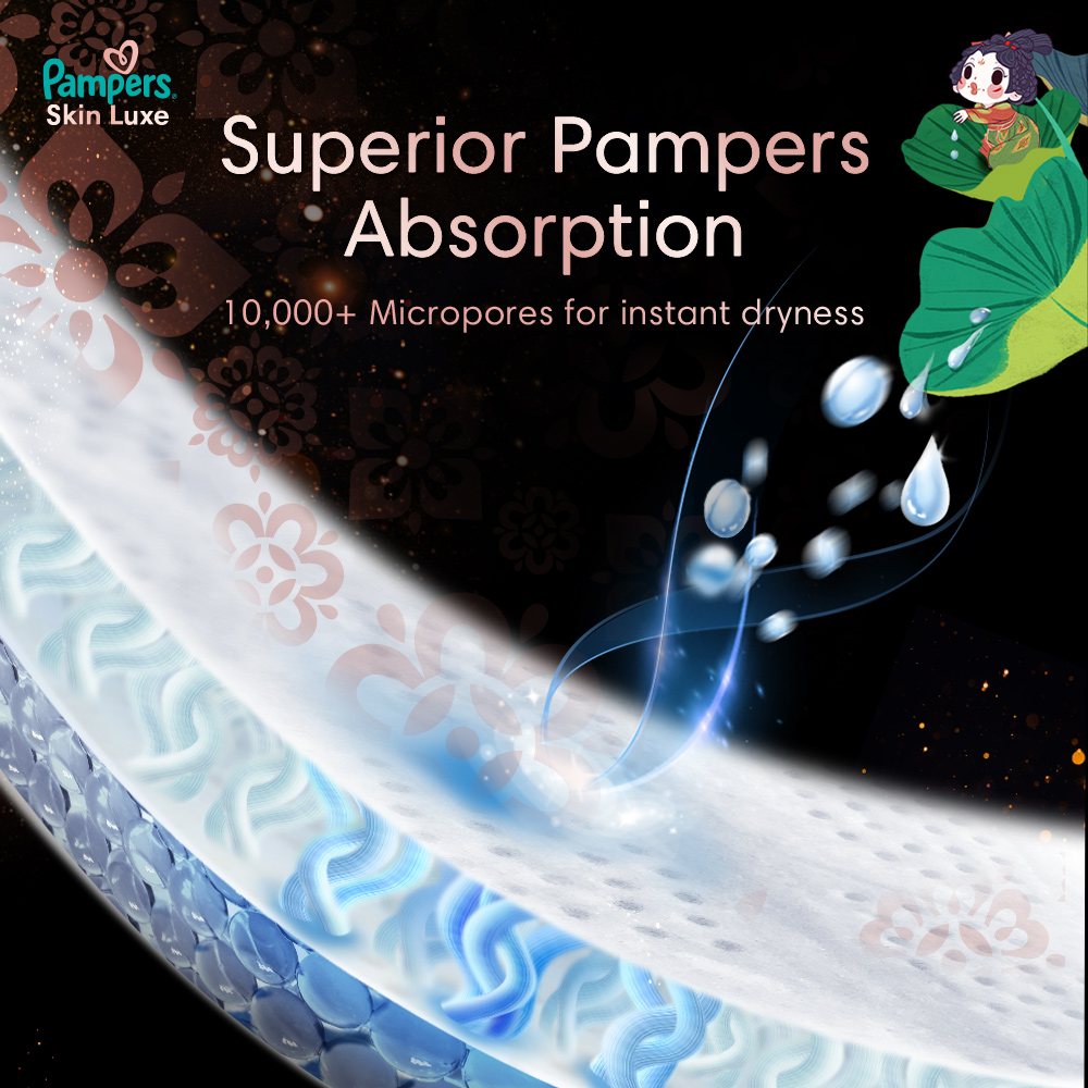 Superior Pampers Absoprtion with more than 10,000+ micro-pores for instant dryness!