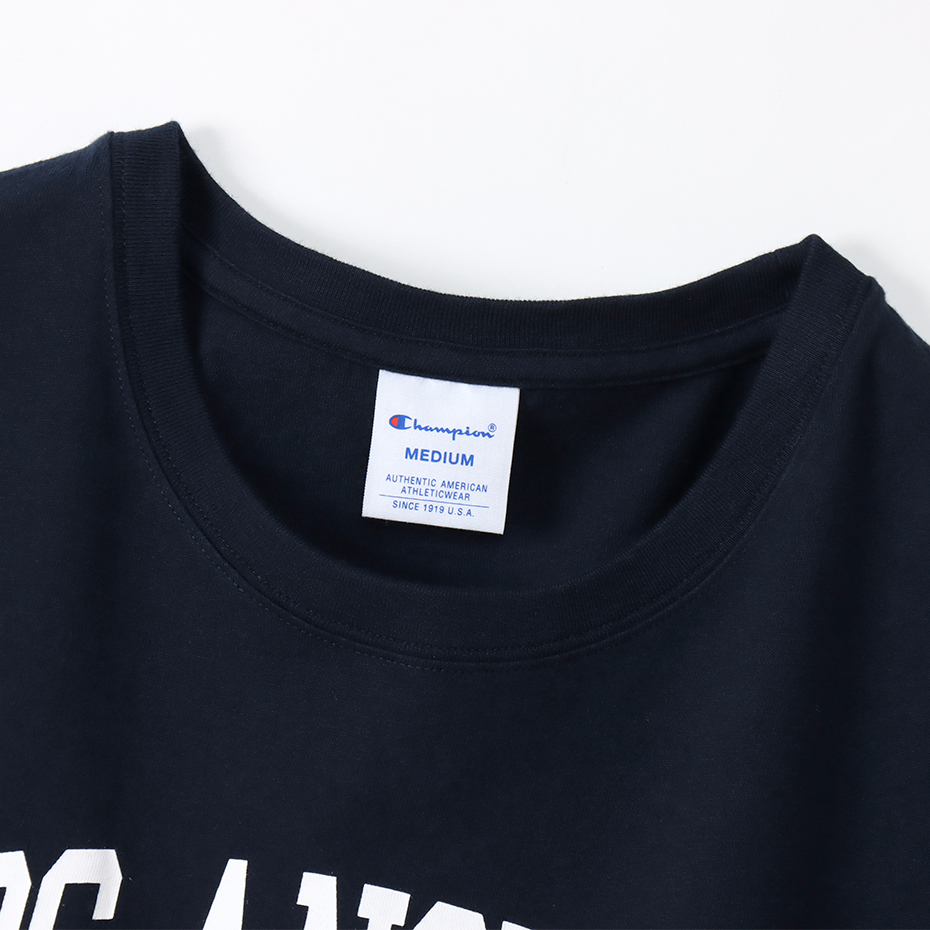 This short-sleeve T-shirt is made from 100% eco-friendly, sustainable American cotton "Cotton USA" and is soft and comfortable to the touch. Relaxed fit with plenty of body width and shoulder width. In the history of the Champion brand, it is an item that has been used and supported by many colleges and teams in the modern era. Graphics using college-style fonts that are highly compatible with champions are expressed with soaked prints and rubber prints.