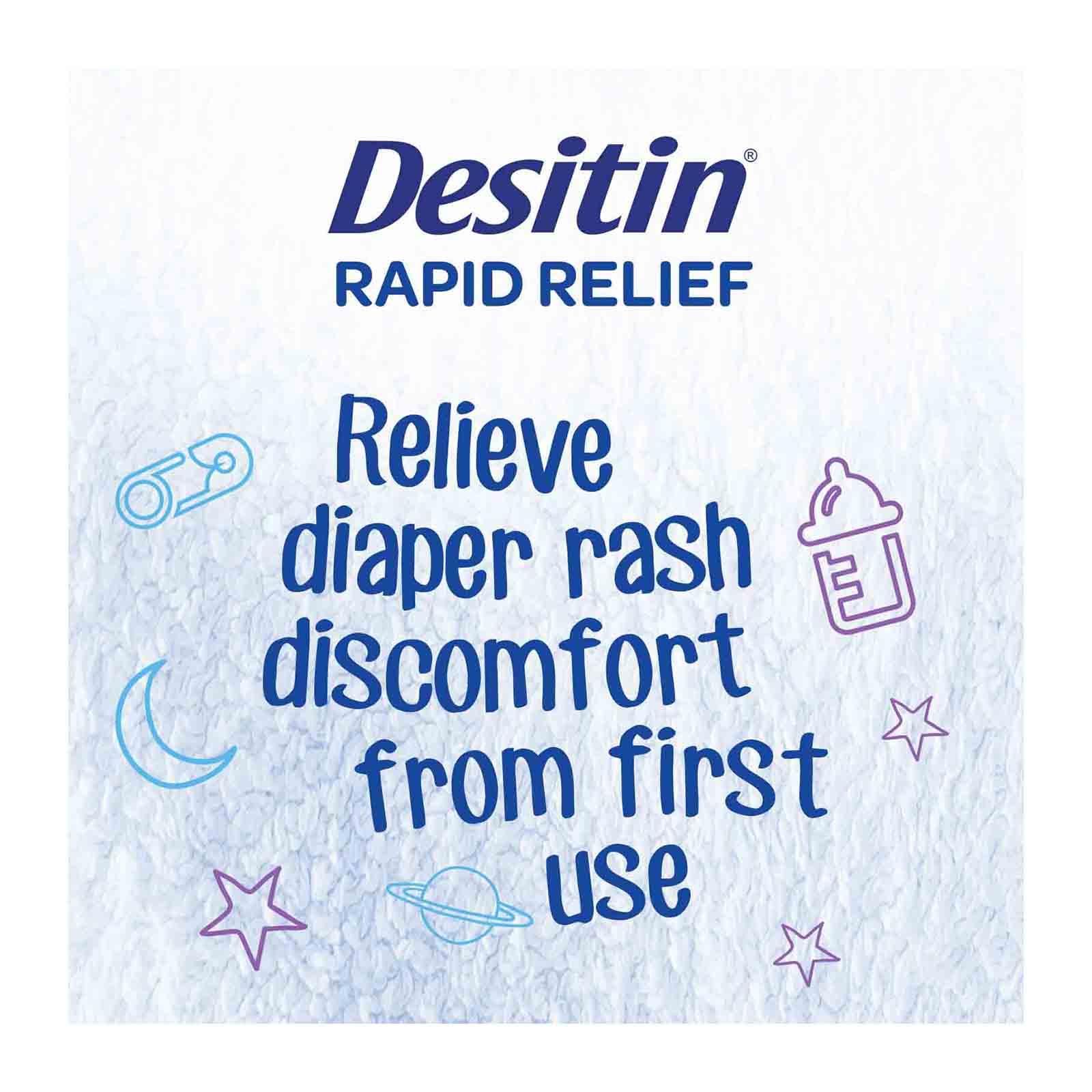 Desitin Rapid Relief Creamy Diaper Rash Cream instantly forms a protective layer on your baby's skin to soothe and relieve rash discomfort, providing relief from first use. This hypoallergenic, dermatologist-tested creamy formula goes on smoothly and wipes off easily. Desitin is the #1 choice of pediatrician and moms!.