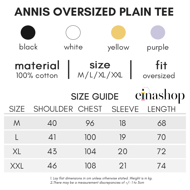 Einashop Streetwear Annis Oversized Women Plain Tee 100% Premium Cotton Streetwear|,|