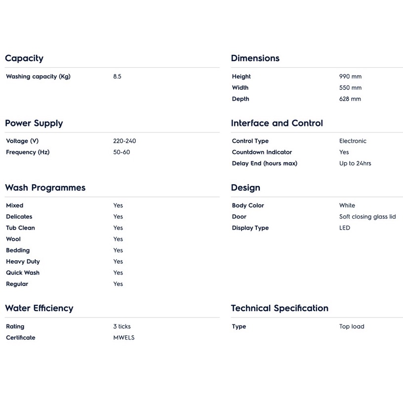 Electrolux EWT8588H1WB Cyclonic Care Top Load Washer 8.5 kg|,|