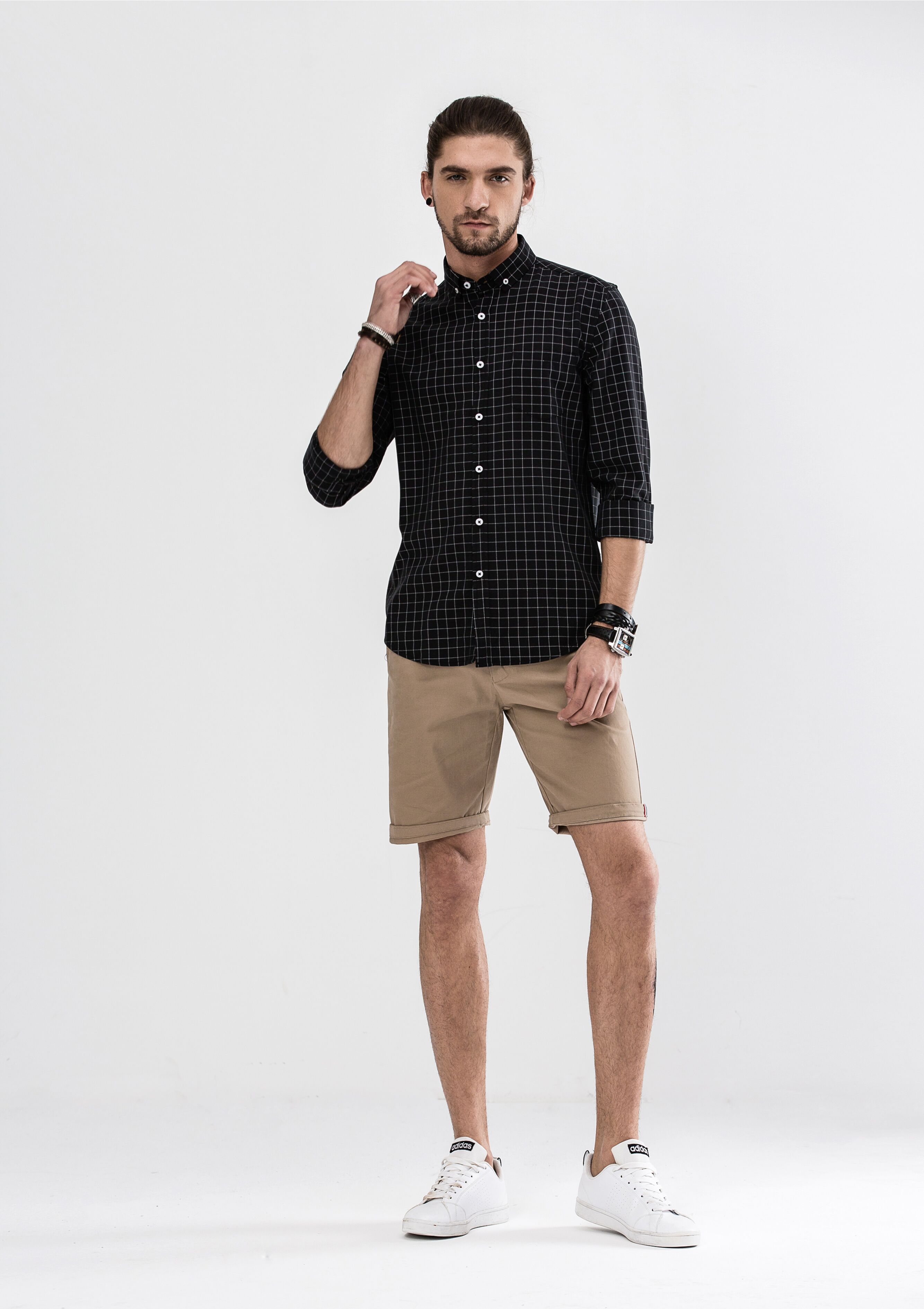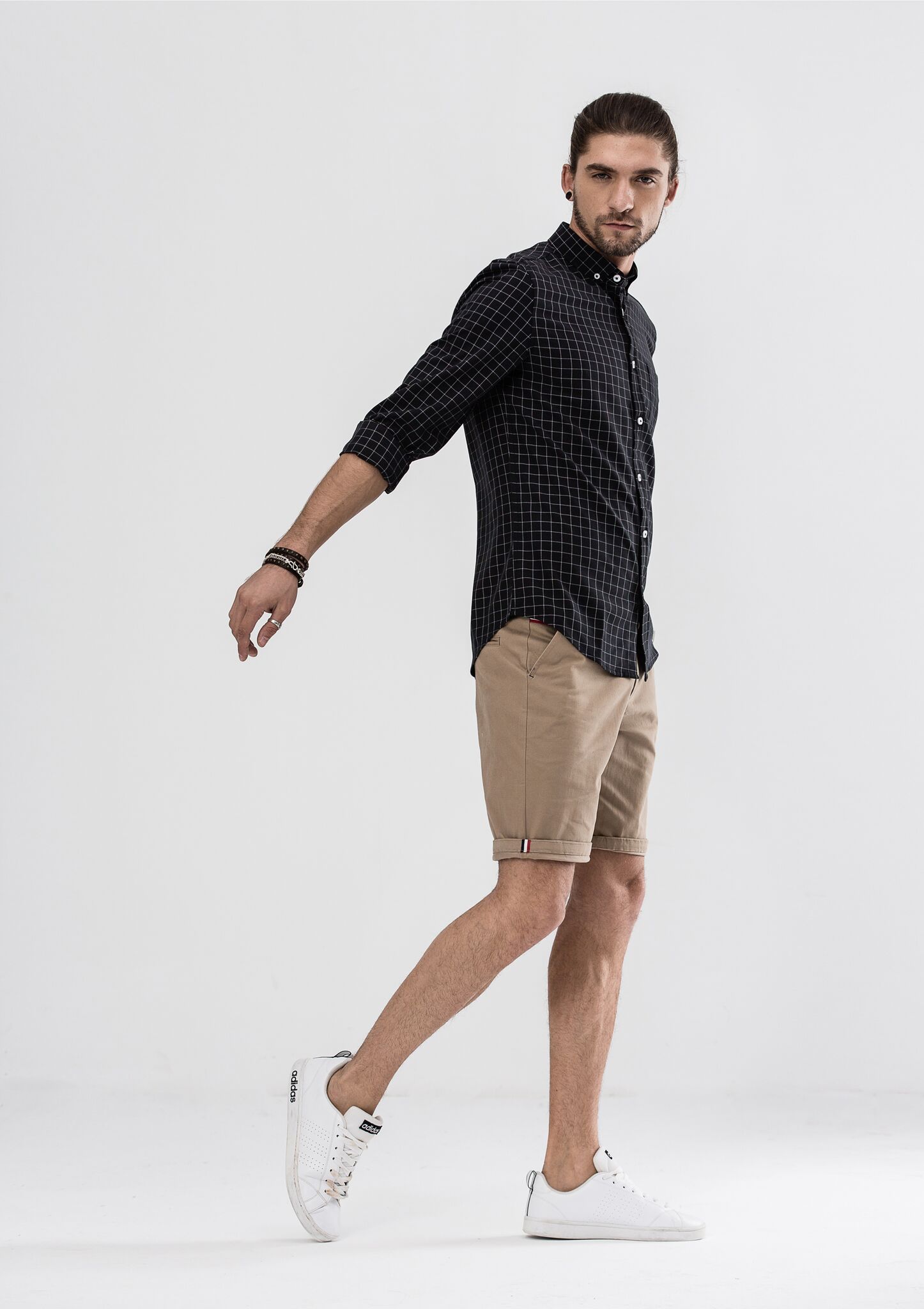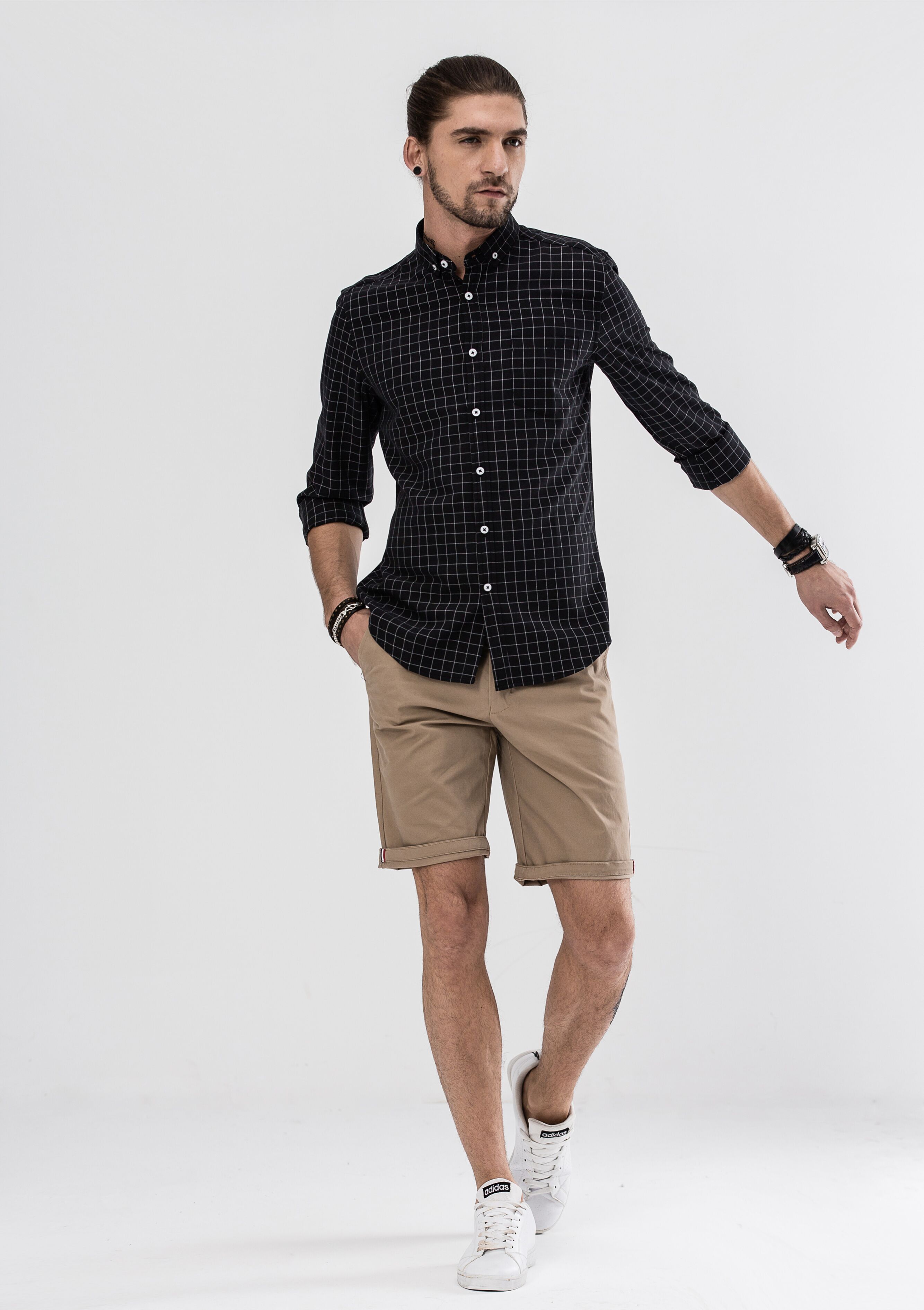 - Signature fit long sleeve shirt with button down band collar and sophisticated curved hem