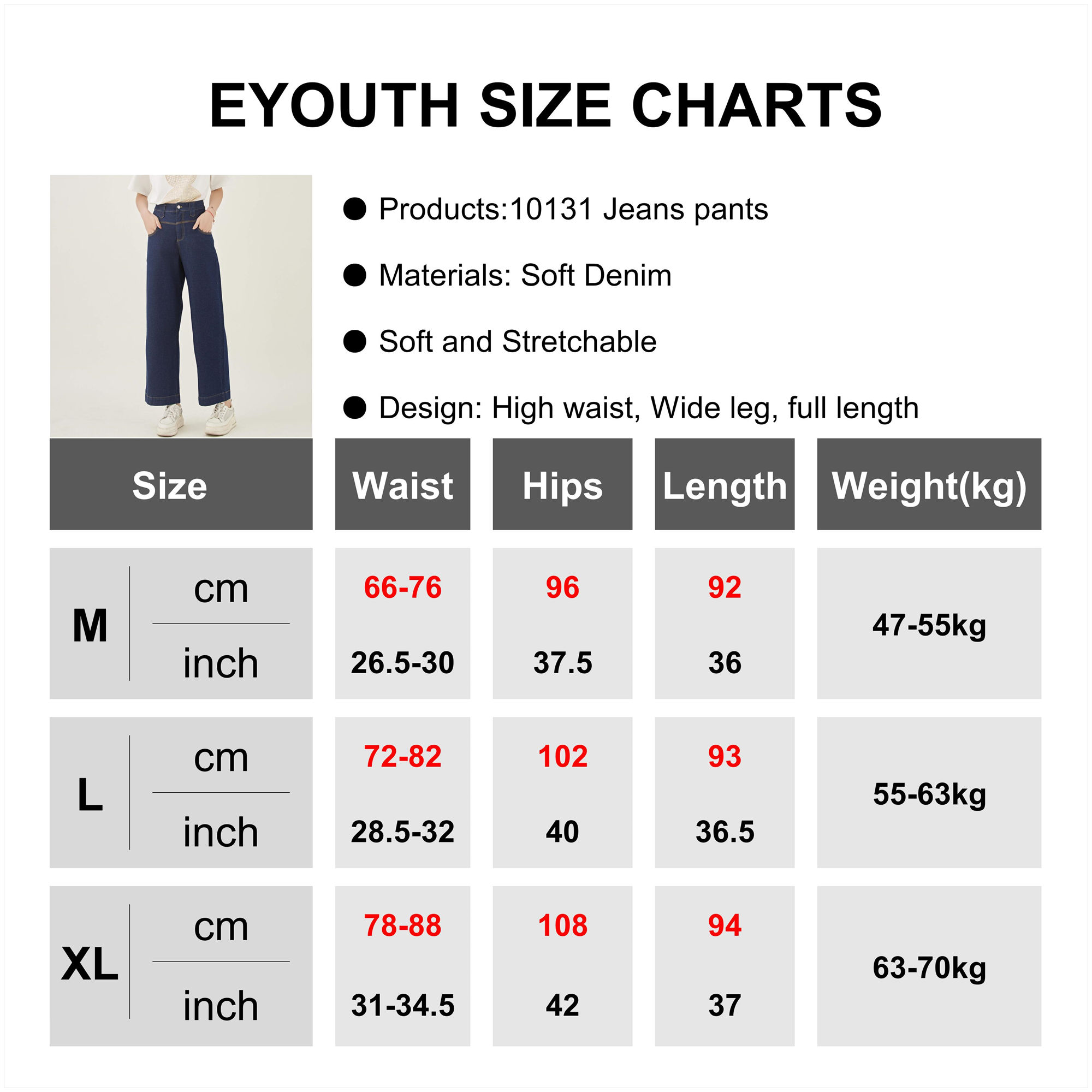 L: Waist 29-32 inch,Hip 40 inch, Length 36.5 inch;