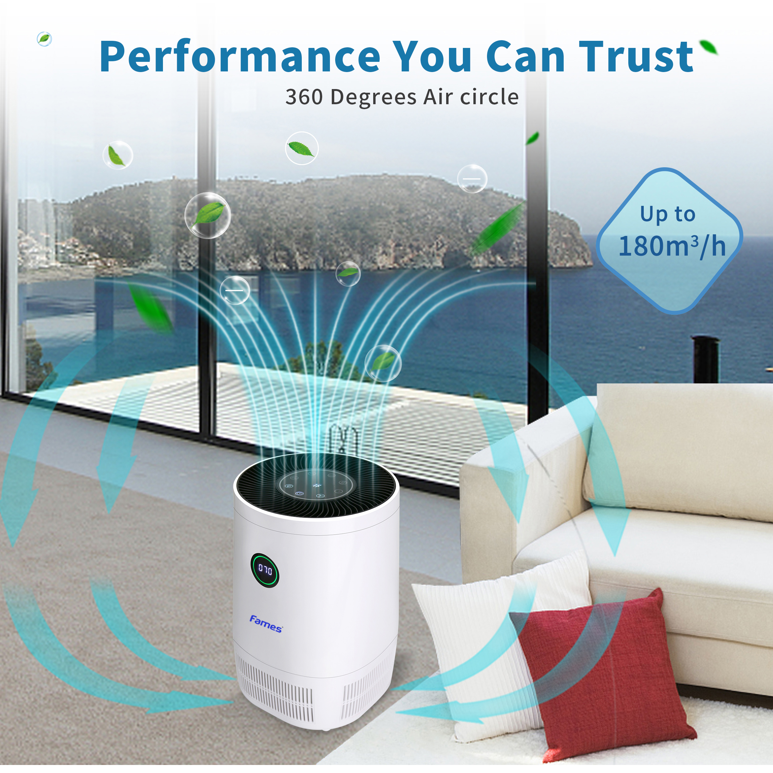 Fames Adv180 Air Purifier, H12 True Hepa Air Purifier (Package includes One Extra/Additional Fames Filter)|,|