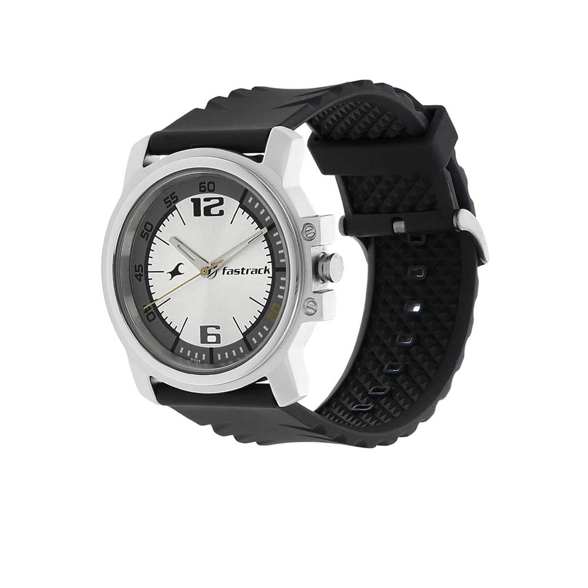Fastrack Silver Dial Black Silicon Strap Analog Watch For Men's 3039SP01|,|