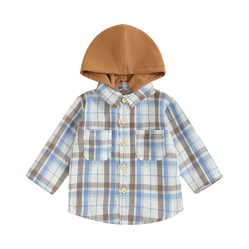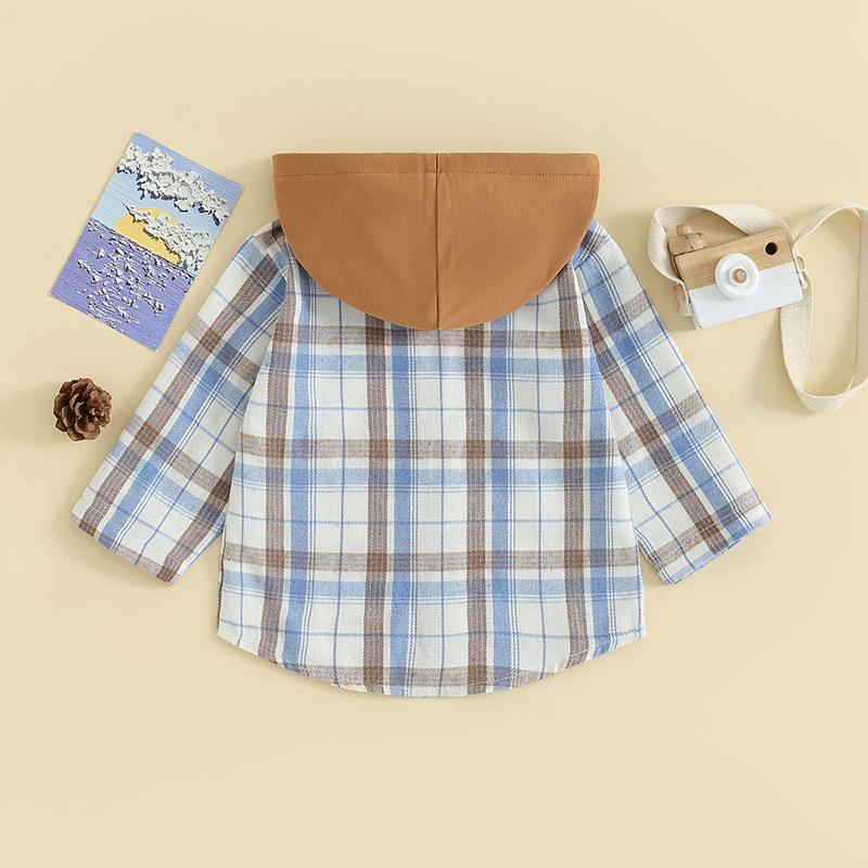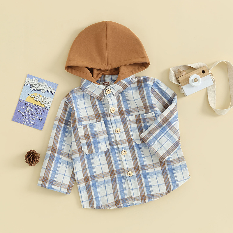 Toddler Baby Hooded Plaid Shirts Long Sleeve Button Down Pocket Tops Jackets Fall Outfits