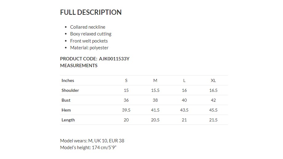 Model wears: M, UK 10, EUR 38 Model's height: 174 cm/5'9”