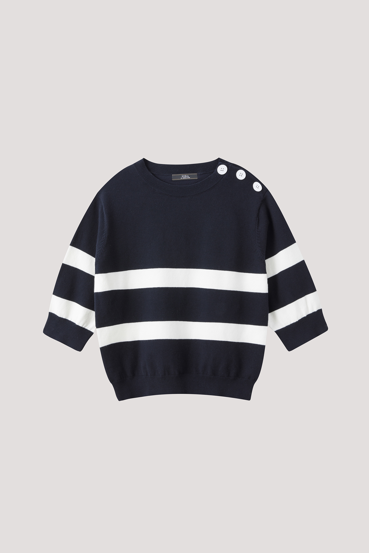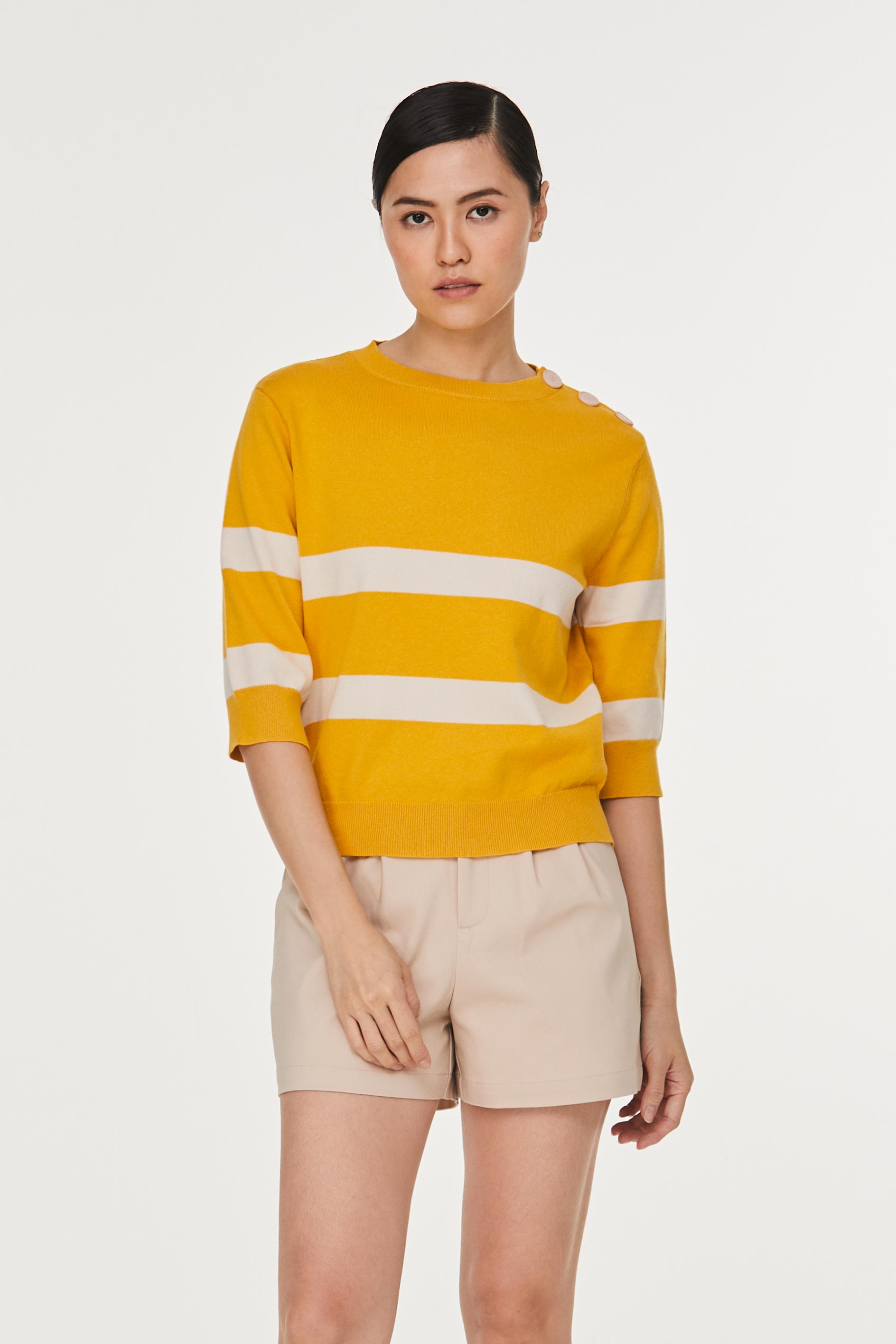 iORA Buttoned Shoulder Striped Sweater|,|