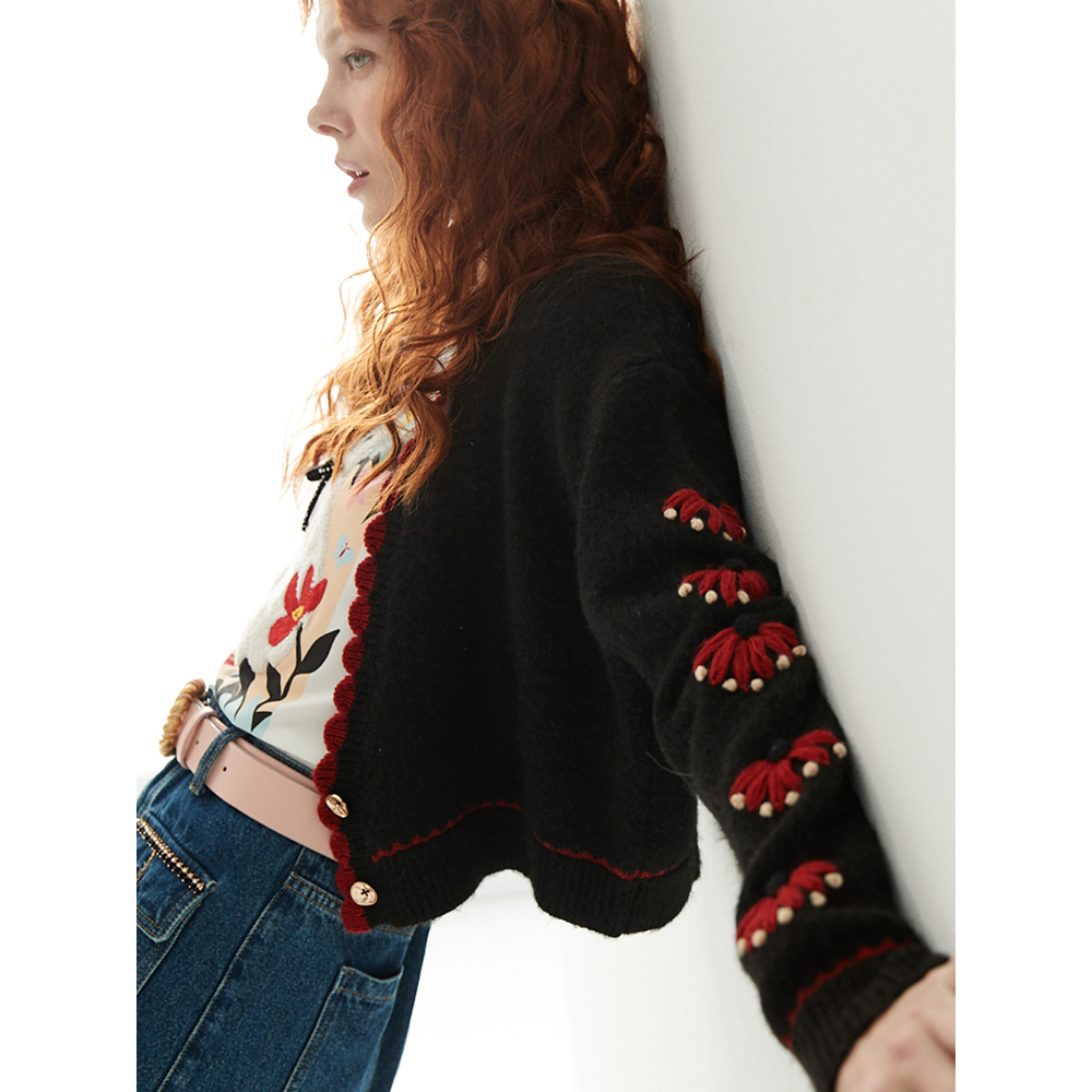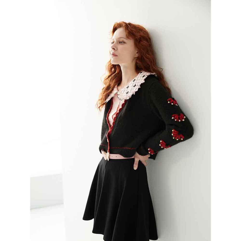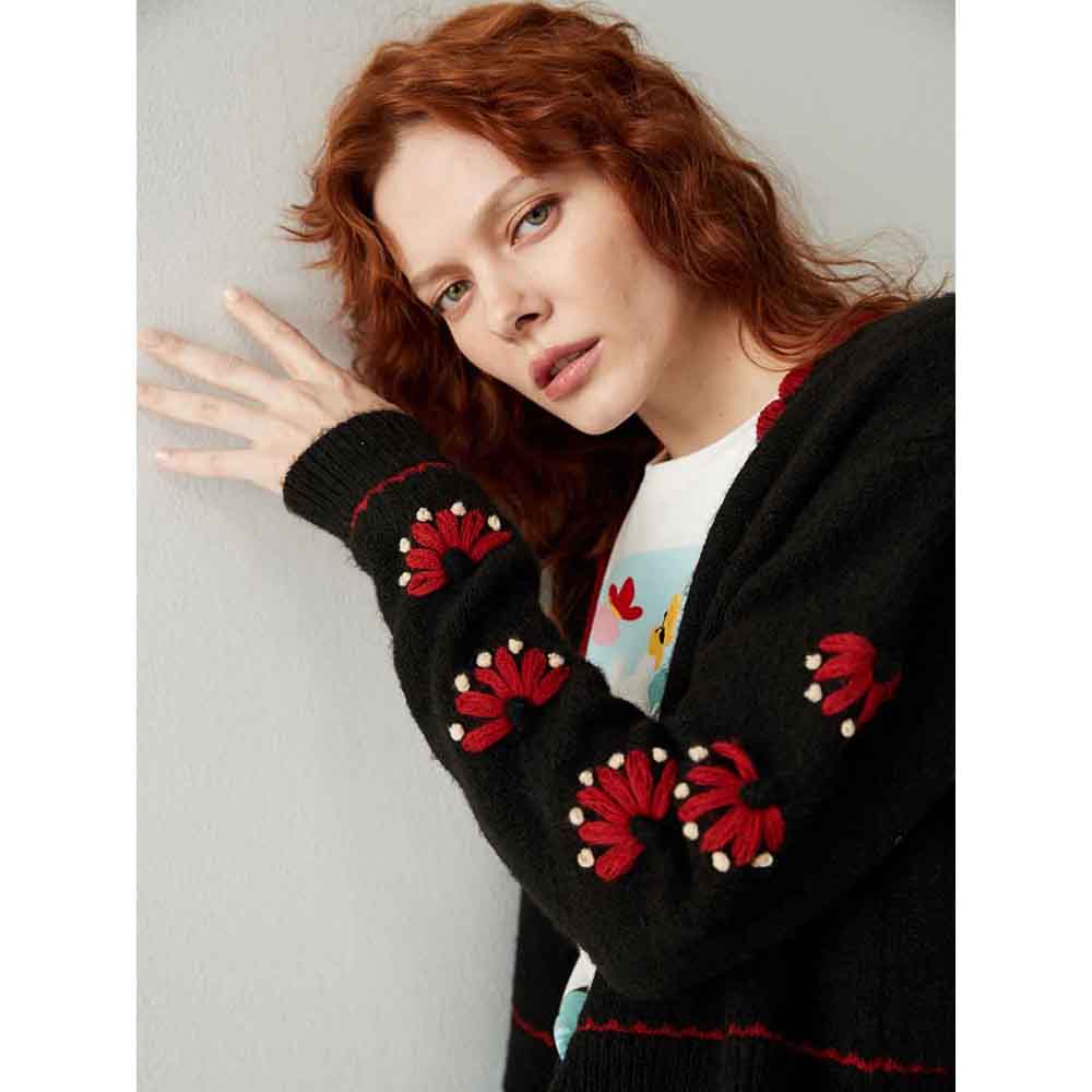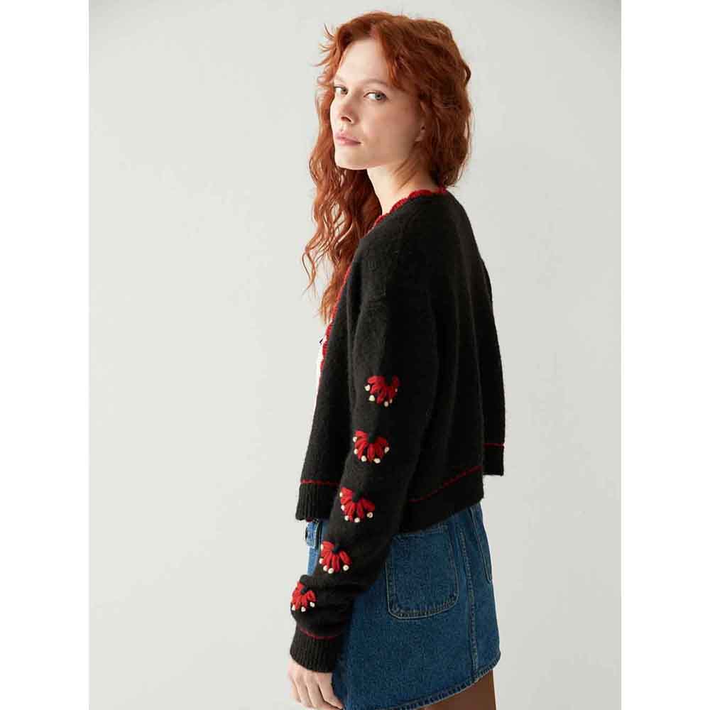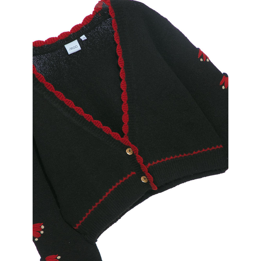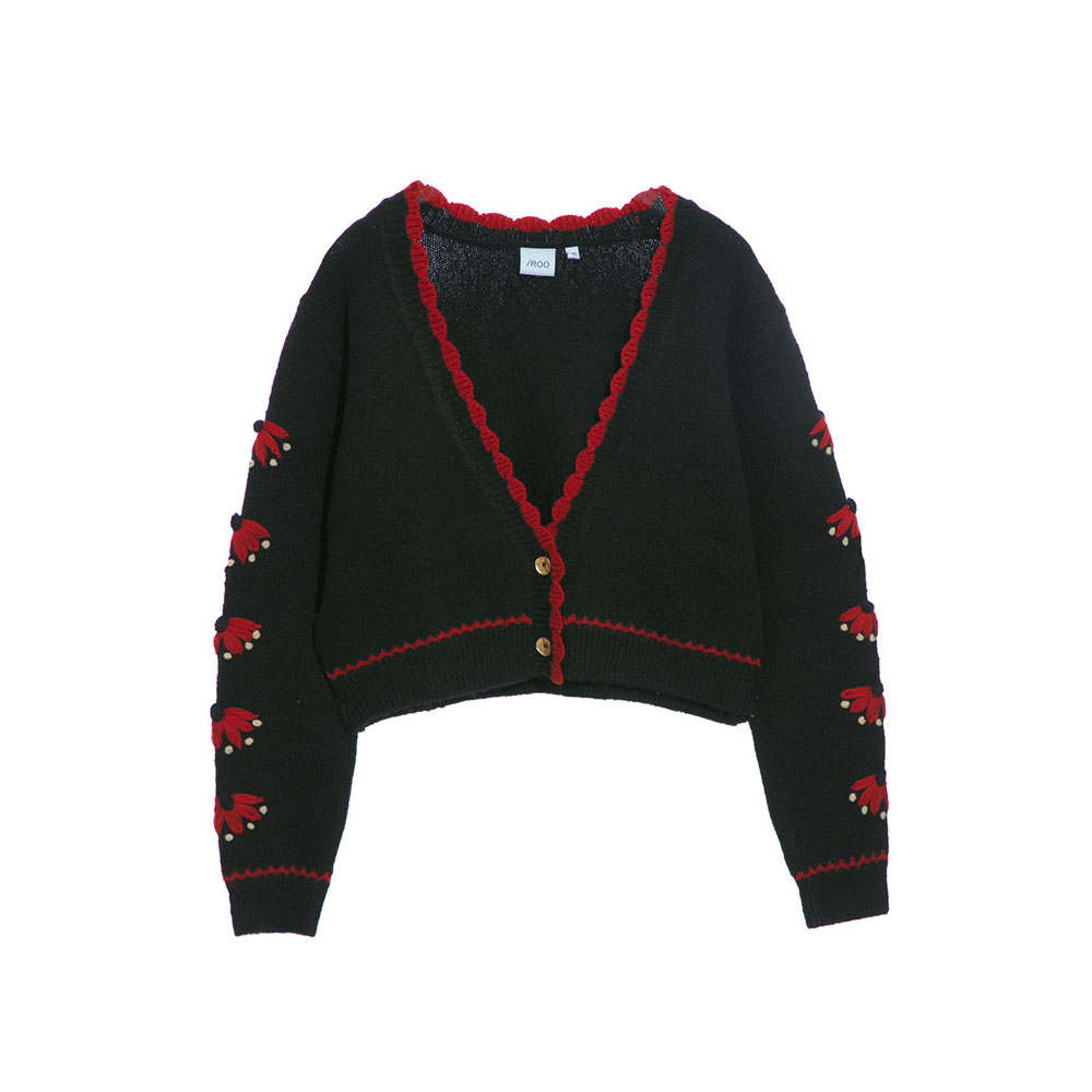 iROO Women Fashion Red Contrast Detail Autumn Cardigan|,|
