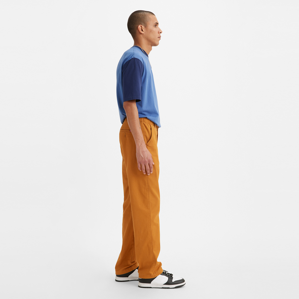 - Introducing Levi’s® XX Chino EZ. With a full elastic waist and Relaxed, Tapered leg, they're easy, versatile and as comfortable as you can get while still looking presentable enough for work. Think equal parts WFH comfort and video conference style. (You'll be making excuses to stand up and show them off.). The ideal WFH chinos. Relaxed fit with a Tapered leg. Full elastic waistband with hidden drawstring. Woven with a hint of Stretch for all-day comfort and easy movement. -98% cotton, 2% elastane -Extra room through the seat and thigh-Sits below the waist-Zip fly-Chino