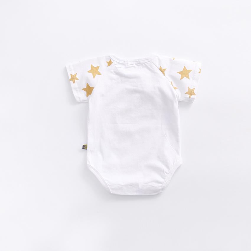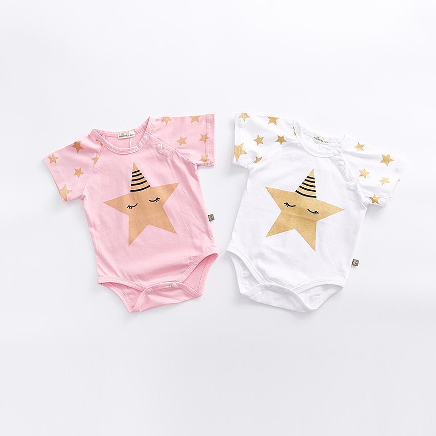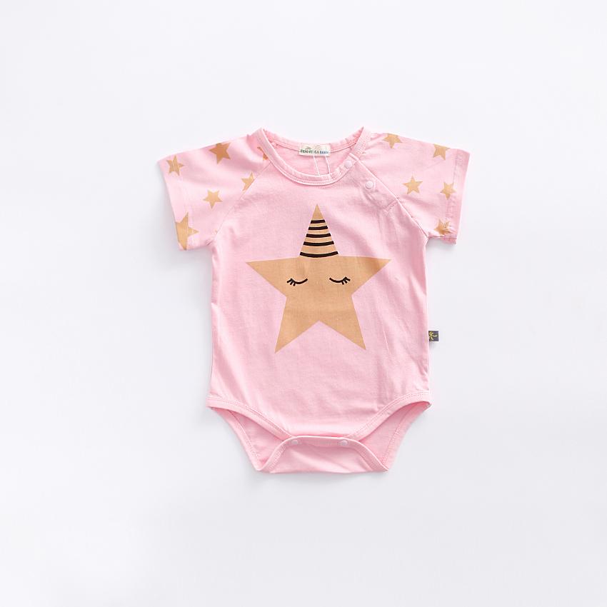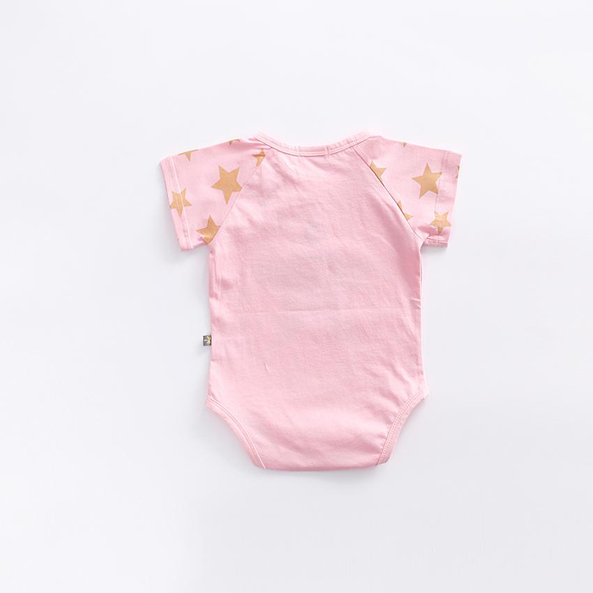 Little Kooma - Baby Star Bodysuit Short Sleeves with Cute Star prints - Pink & White|,|