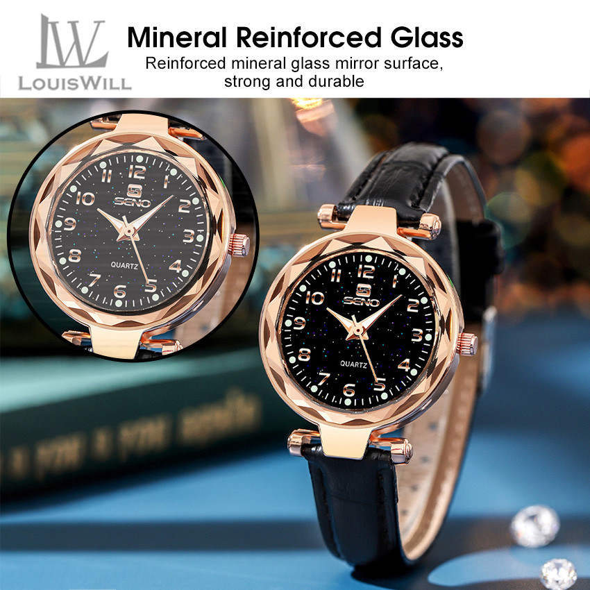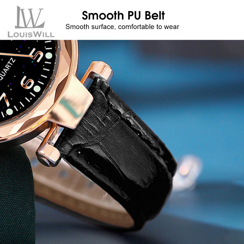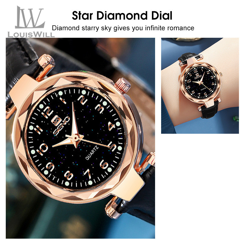 - Fashionable Design: Smooth and fashionable PU strap, romantic star diamond dial design, diamond cut mirror, show your unique charm.