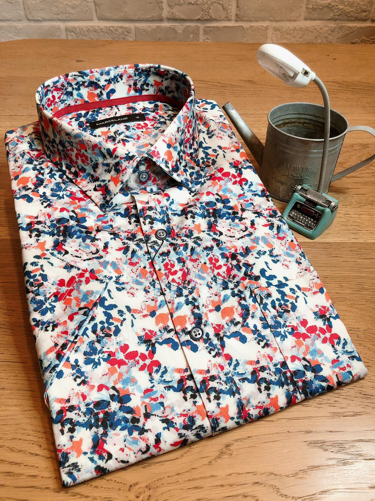 MARCELANO Premium Men Slim Fit Printed Sateen Short Sleeve Smart Casual Shirt|,|