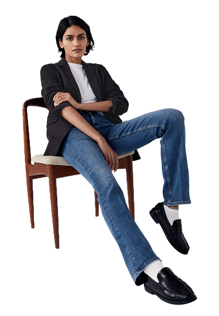 • Feel effortlessly chic in our cotton-rich Eva jeans. Slim bootcut shape with a flattering high waist and ankle grazer length. Super stretchy fabric and soft denim ensures our best ever fit and feel. Made with recycled polyester.