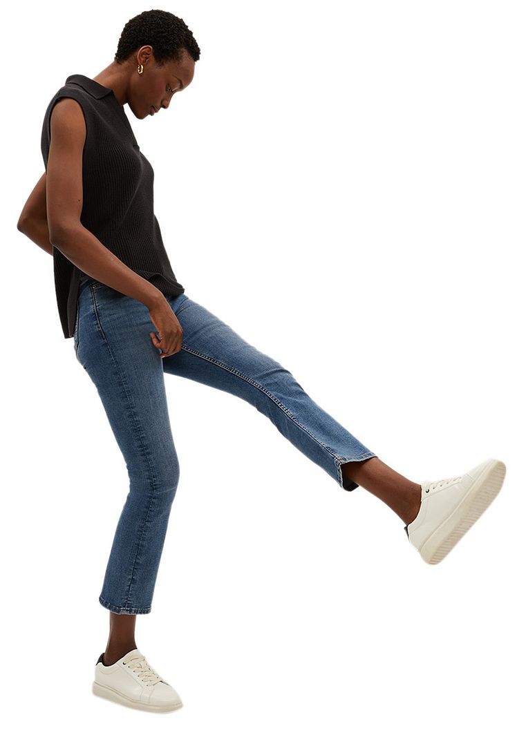 Refresh your denim collection with our cotton-rich slim flare jeans. This on-trend pair sits close against the leg and high on the waist for a flattering fit and is cropped at the hem. They're finished with metal hardware and a classic five-pocket finish. Made with recycled polyester. All M&S denim is made with responsibly sourced cotton and less water. Dyeing with pre-reduced indigo reduces water and chemical use in production.\r