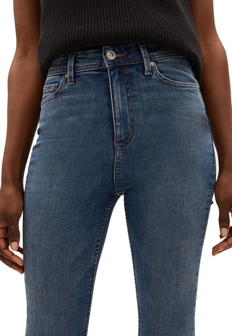 M&S Collection: easy-to-wear wardrobe staples that combine classic and contemporary styles.Product Style: Flared, Button and zip fastening, High rise, Recycled polyester. Pre-reduced Indigo is a cleaner and more resource efficient dye, using less chemicals, water and energy in the dyeing process.Material Composition: 74% cotton, 24% polyester and 2% elastaneCare instructions:Machine washable