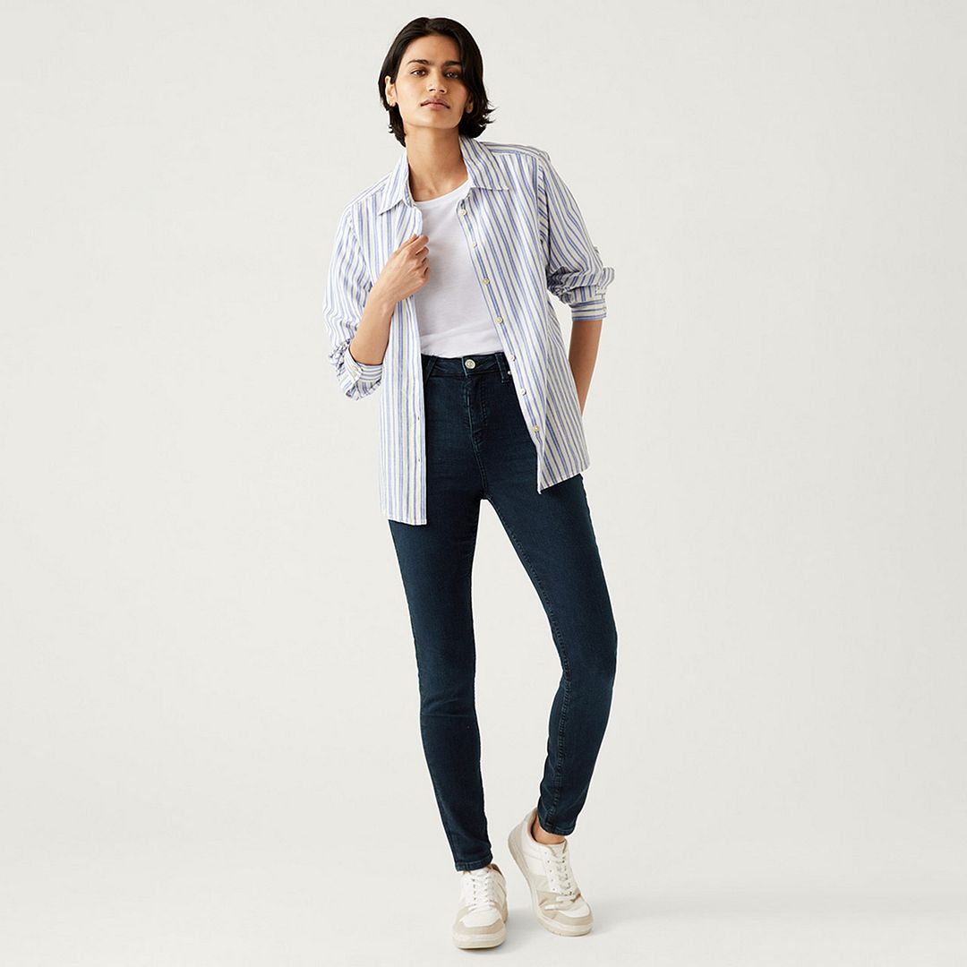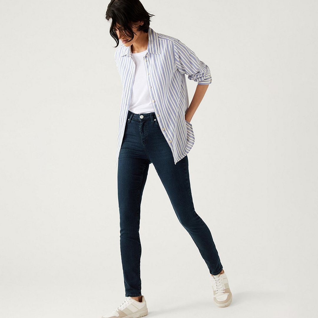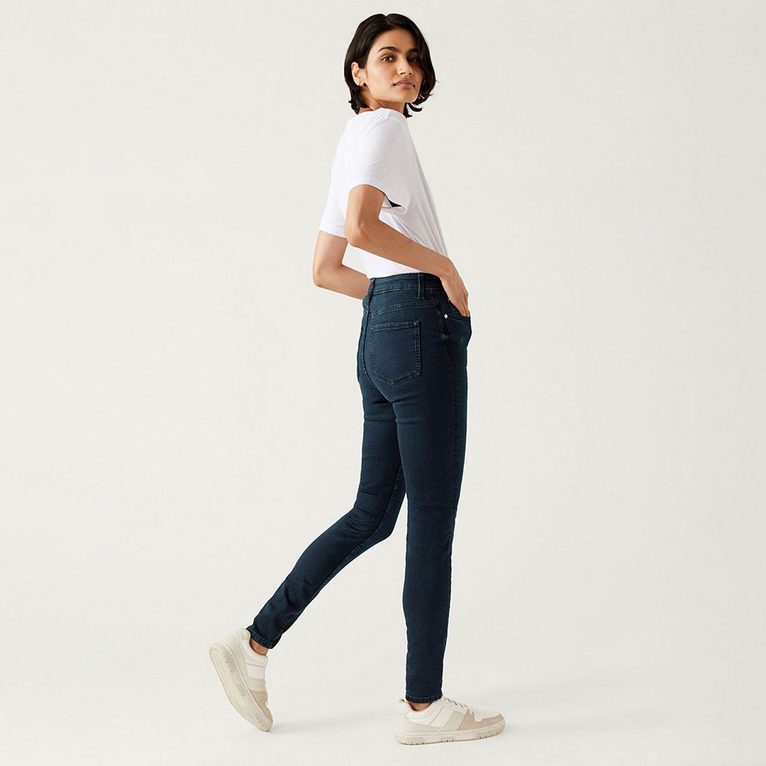 Overview: - Both comfortable and flattering, these are definitely the perfect jeans - Skinny style for a close-fitting look, with a dash of stretch for all-day comfort - Modern high waist and ankle-grazer length - Made from cotton-rich denim - All M&S denim is made with responsibly sourced cotton and less water. Product Style / Style number:T57/7561 Model Display / Item Details: -Model Height: 5ft 10"/179cm -Model is wearing size: 8 Fit & Style: -Skinny fit -Button and zip fastening -High waisted -All M&S denim is made with responsibly sourced cotton and uses less water, with the aim of lowering the environmental impact of our jeans. Material Composition / Fabric Details: - Grey and medium indigo - 77% cotton, 21% polyester and 2% elastane Black mix - 81% cotton, 17% polyester and 2% elastane Blue and black - 80% cotton, 18% polyester and 2% elastane Fabric Care Guide / Washing Instructions: -Machine washable