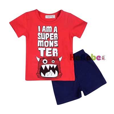 【NEW DESIGN with monster printing】unisex baby romper/Kids T-shirt + Pant suit FOR height 70cm -120cm
