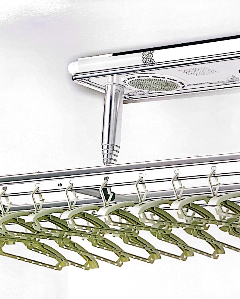 . digital remote control, dry clothes easily with just one press . raise, lower ultra-low mute, drying is more comfortable . equipped with an anti-obstruction automatic shutdown protection system to safely protect the motor . the main components use the industry's highest standard components, with excellent performance and durability . stylish painted lamp design, highlighting the luxurious style . the bracket is made of high-strength alloy titanium-aluminium material by one-time forming • the anti-typhoon telescopic hanger is made of specific raw materials, with bright colour and anti-aging high-performance 304 stainless steel wire rope, no rust, no burrs, high tensile strength equipped with a movable sheet drying rack that can dry up to 1.8 meters . streamlined appearance, lighting, clothes drying all in one, stylish and safe infinitely long lifting device can meet any height
