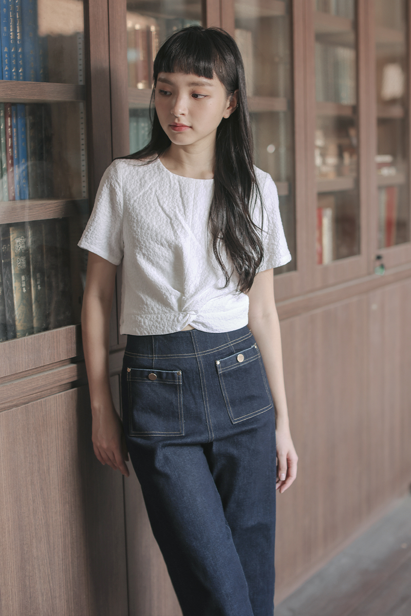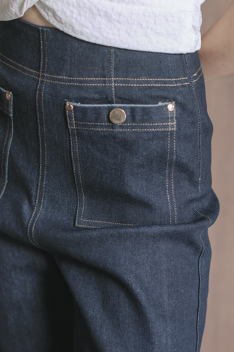A pair of denim jeans never fails! This is better without the fly front zip and comes with functional front patch pockets embellished with gold snap buttons!