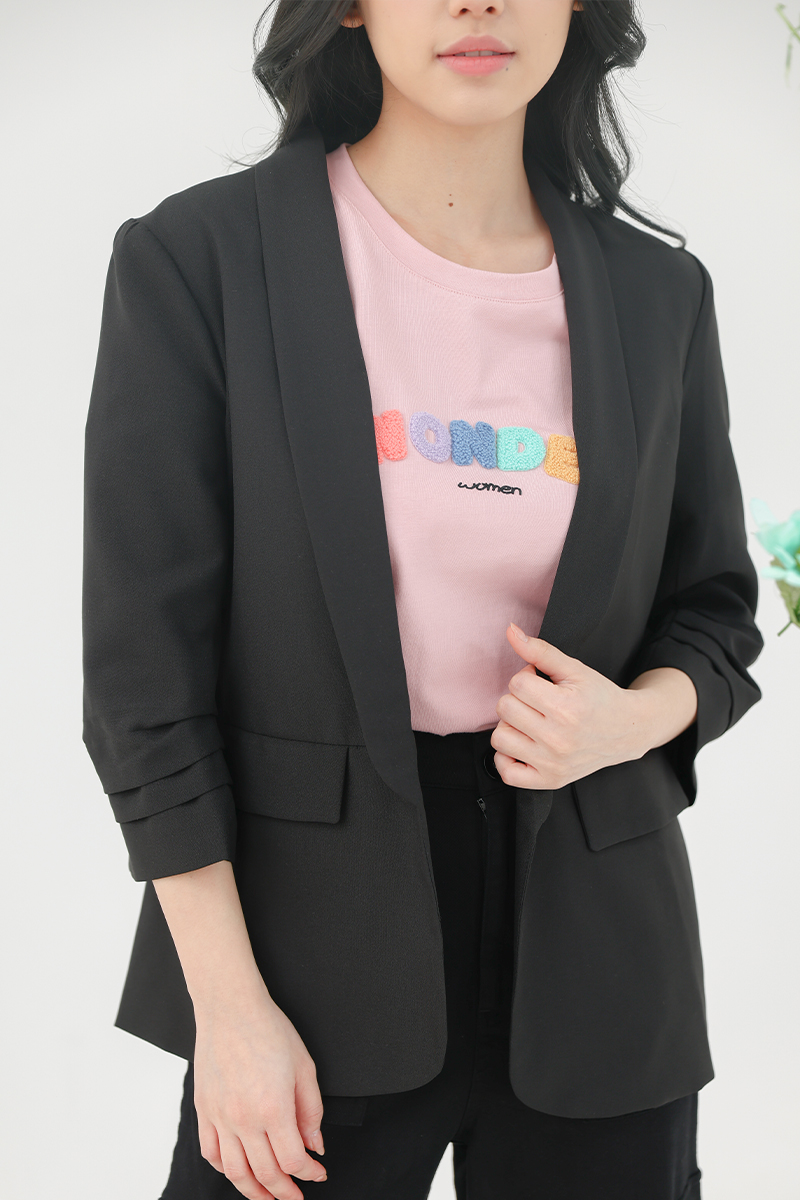 Step up your style game with Adelia! The sleeves of the blazer are pleated which is suited for casual and formal occasions, while the lack of buttons creates a clean and streamlined look. Adelia is perfect for pairing with a variety of outfits, from jeans and a t-shirt for a casual look, to a dress or skirt for a more formal occasion.