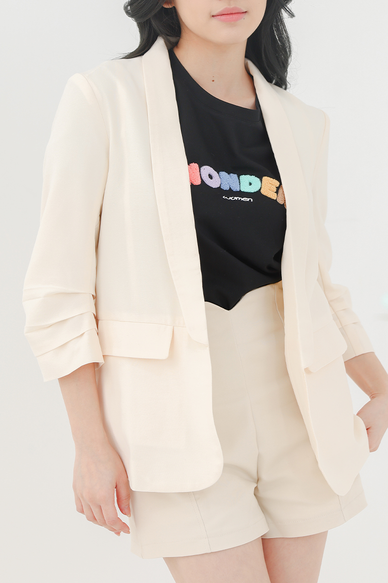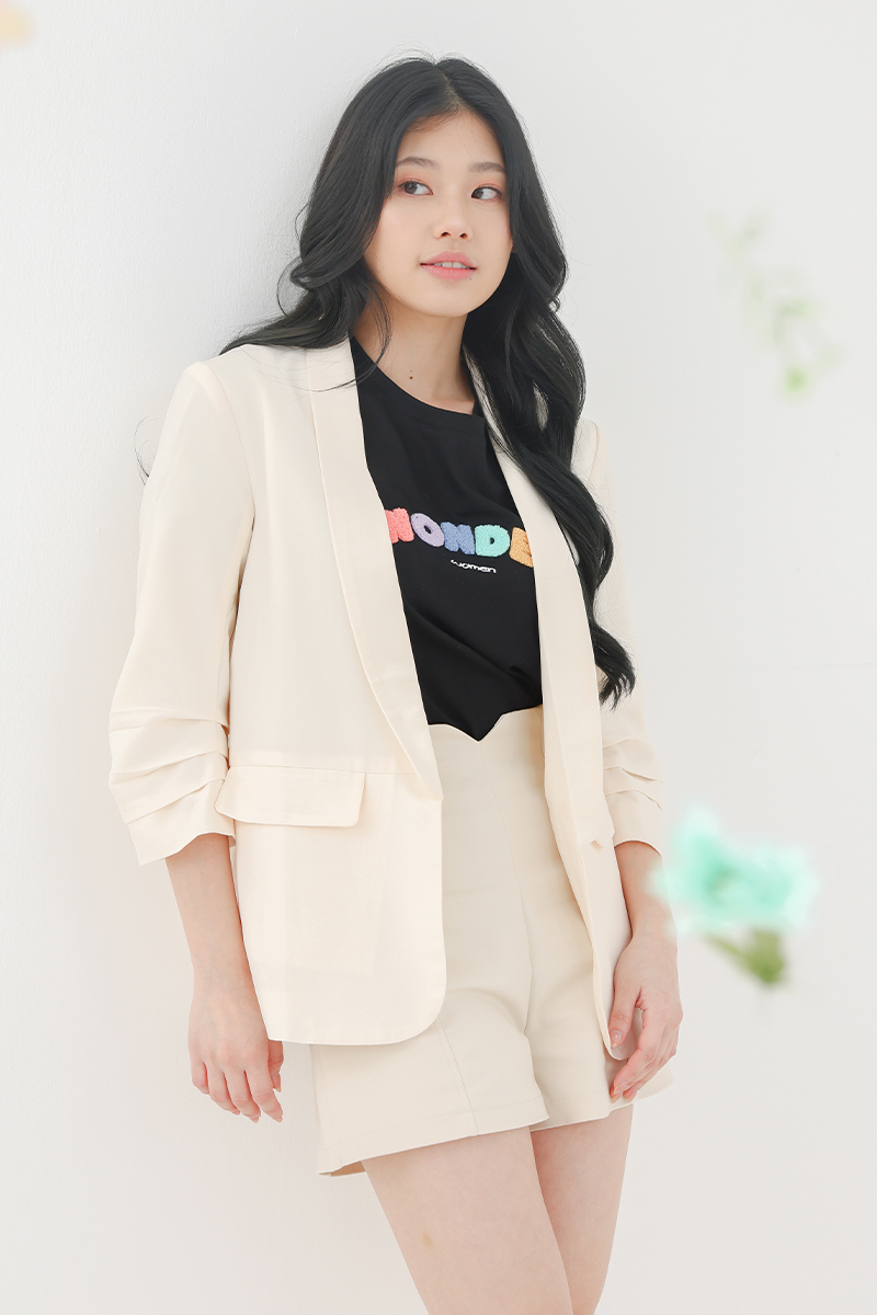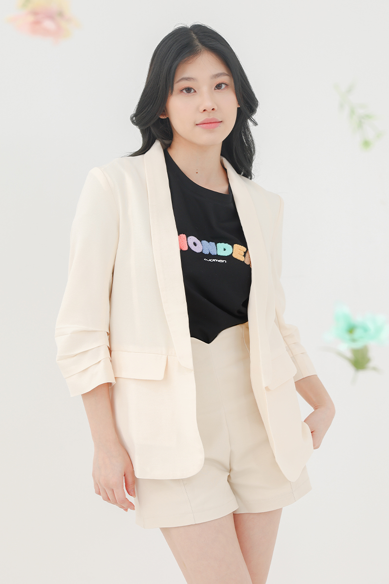 Step up your style game with Adelia! The sleeves of the blazer are pleated which is suited for casual and formal occasions, while the lack of buttons creates a clean and streamlined look. Adelia is perfect for pairing with a variety of outfits, from jeans and a t-shirt for a casual look, to a dress or skirt for a more formal occasion.