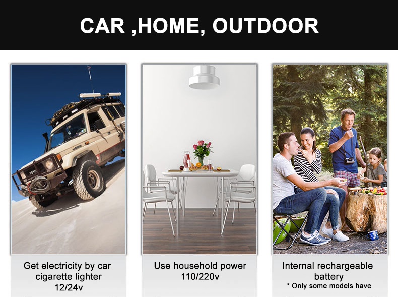 • CAR AND HOME USE: includes 2 power cables to separately connect with 12/24V DC and 110V to 240V AC power inputs. Run great with your small solar system as well.