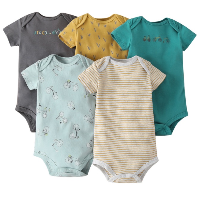 [SG Ready Stock] Baby Boys 5-Pack Short Sleeve Bodysuits Rompers Onesies [Little Gems] MPB001 bundle|,|