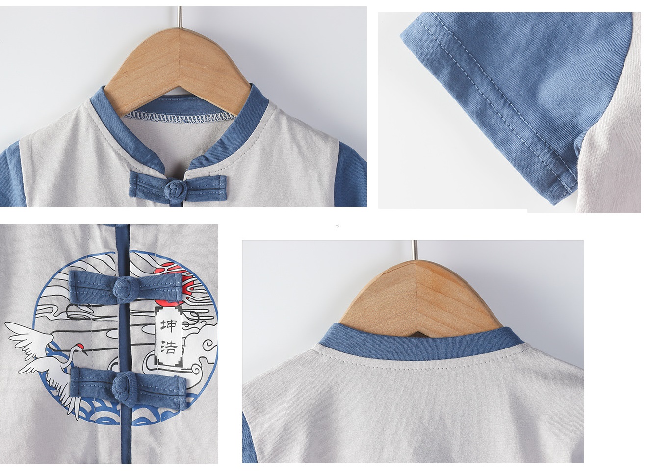 [SG Ready Stock] CSRB050 Baby Toddler Boy Chinese CNY Traditional Romper Jumpsuit Onesie Crane Yellow Blue [Little Gems]|,|