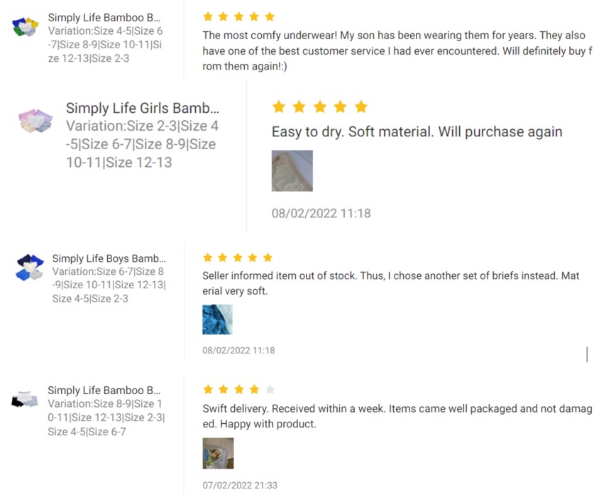 Simply Life Boys Briefs - 5 colours per set - 180 gsmThe naturally hypoallergenic bamboo fabric cares for your child's sensitive skin, keeping them happy and radiant! Perfect for the tropical and humid weather. Double stitched for durability with soft seams for greater comfort! Amazing Benefits of Bamboo ✔️ OEKO-TEX® Standard 100 Certified✔️ Hypoallergenic, Anti-fungal & Anti-bacterial✔️ Breathable & thermoregulating (cool in warm surroundings & warm in ✔️ colder temperatures)✔️ Wicks water four times faster than cotton & does not stick to skin✔️ Ultra soft & easy to care for[ Made from 95% Bamboo Viscose, 5% Spandex ]