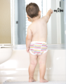 Your little one is growing up. These training pants are perfect for potting training and easy to pull up. The fun stripes will give your child confidence while transitioning from diaper to potty. Padded for wetness security. Elastic waist for comfort. 100-percent organic Egyptian cotton. GOTS certified. Made at fair trade farm in Egypt. Absolutely NO Azo colorants, BPA, flame retardants, formaldehyde, fragrance, PVC or lead.
