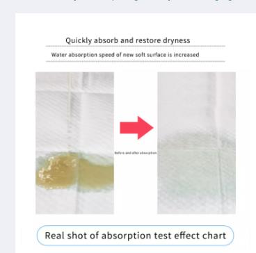 Super absorbent polymer locks wetness away and reduces pH of urine for advanced odor control and skin wellness.